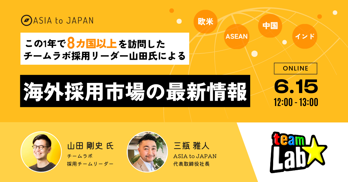 【6月15日(木)ウェビナー開催!】この1年で8カ国以上を訪問した「チームラボ採用リーダー」山田氏による“海外採用市場”の最新情報
