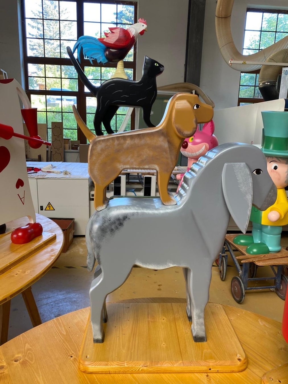 日本でも、なじみの深い「眠れる森の美女」や「赤ずきんちゃん」「ブレーメンの音楽隊」といった物語をクリスマスピラミッドの中で表現しております。