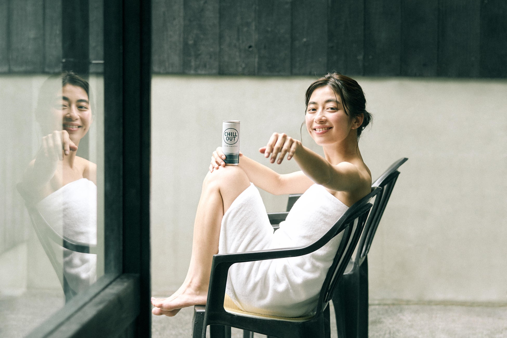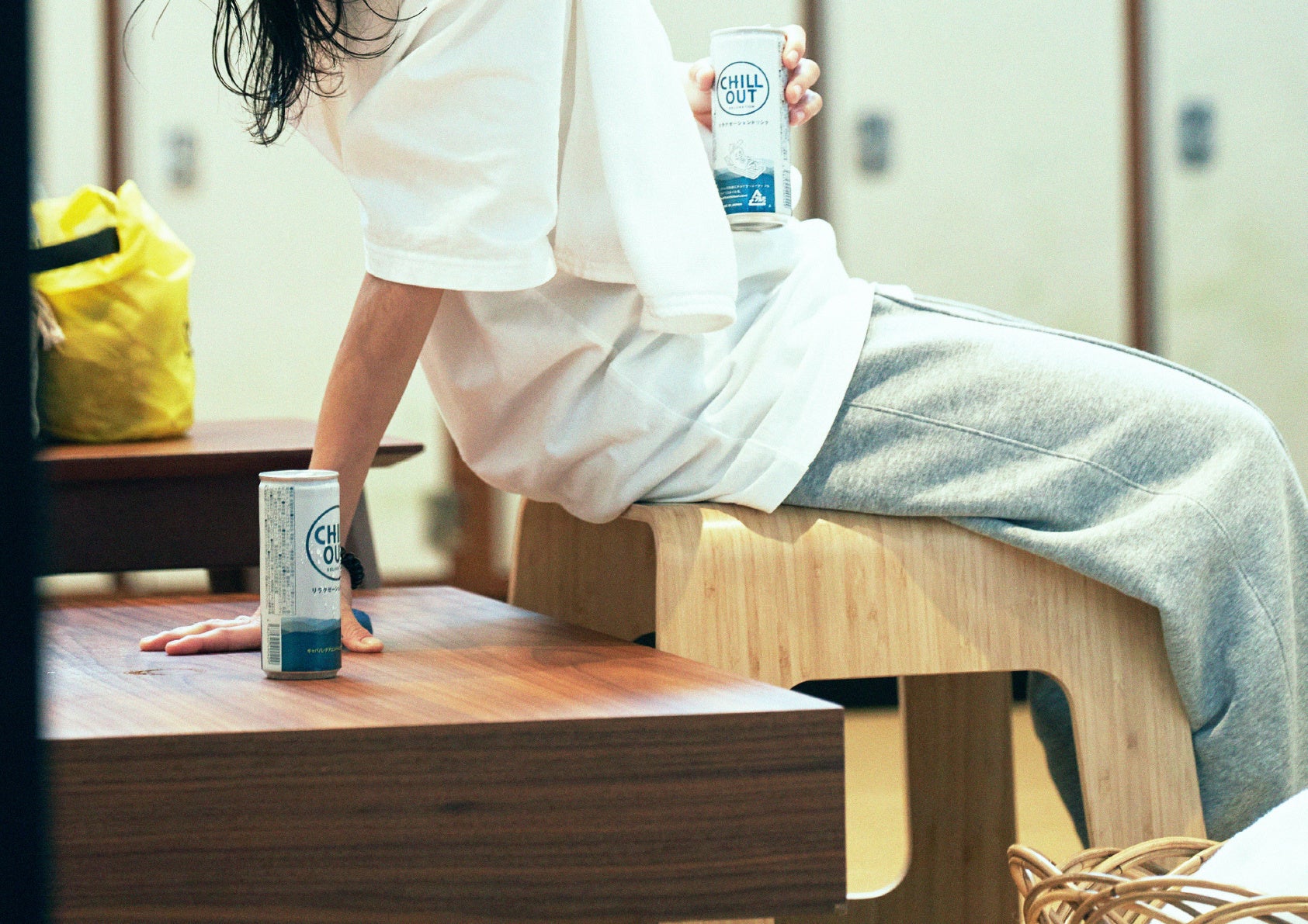 湯上がりには、よく冷えたCHILL OUTをどうぞ。微炭酸の爽やかな飲み心地と、GABA、L-テアニンをはじめとする4つのリラクゼーションサポート成分配合で、お風呂上がりのチルタイムをさらにゆったりとお過ごしいただけます。