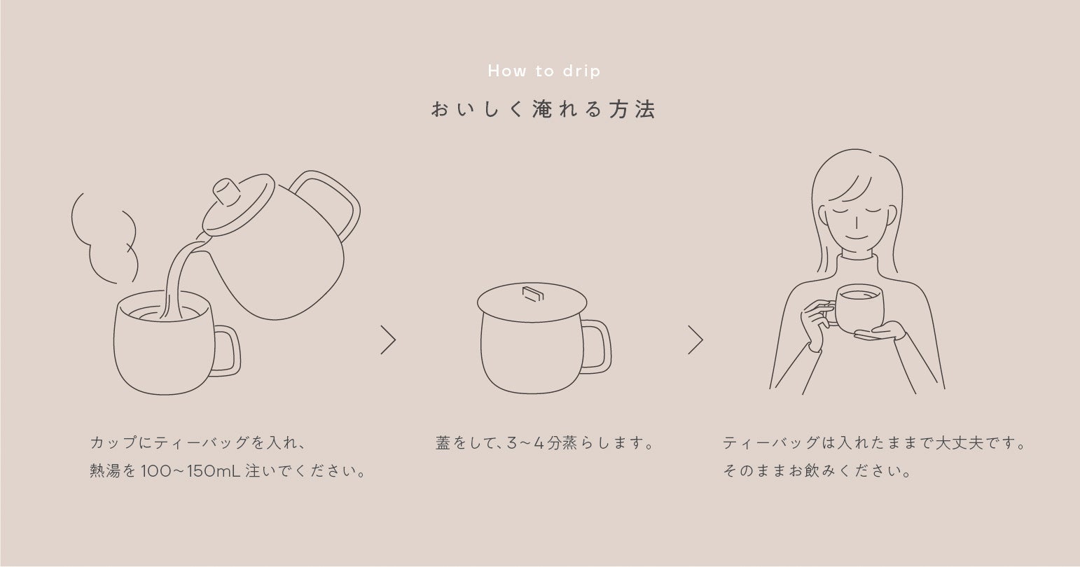 ビタミンC や美容成分が豊富なローズヒップ、レモンマートルと、和漢のサンザシ、ナツメを配合したエイジングケア※3 ブレンド。バランスの良い酸味ですっきり爽やかフルーティな味。