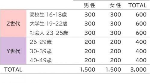 本リリースはそのデータを基に、Z世代の持つ特徴をその先行世代となるミレニアル世代やジェネレーションY(以下、Y世代)と比較しつつ、Z世代を取り巻く美意識や推し活・オタ活について考察いたしました。