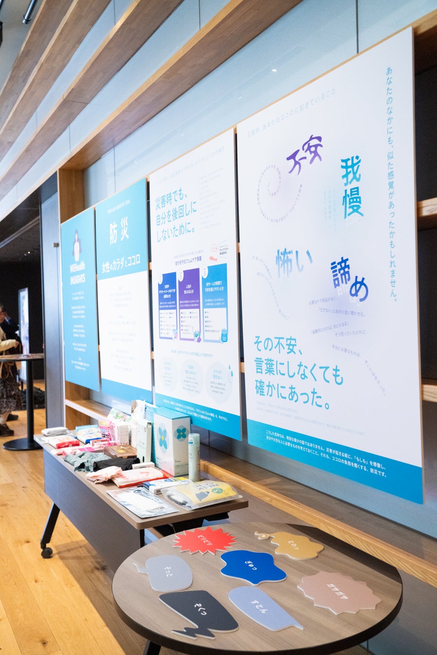災害時にも続く女性のカラダとココロの変化に目を向け、日常の延長線上にある防災という視点から展示・情報発信を行いました。