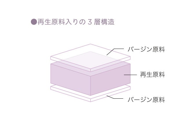 使用済み再生原料を使用した3層構造の再生原料入りストレッチフィルムで資源循環による環境負荷を低減した商品です。
