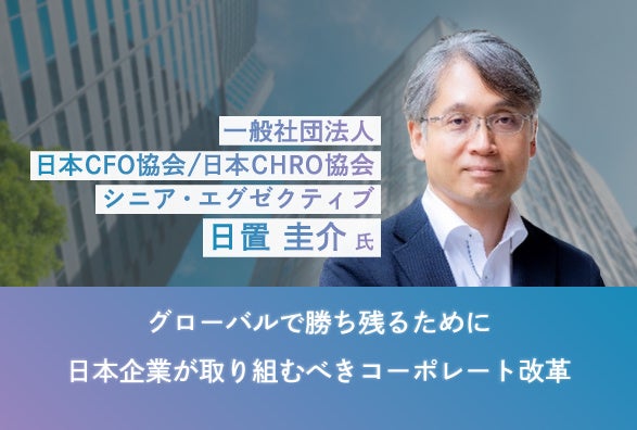 今回のセミナーでは、経済産業省による「グローバル競争力強化に向けたCX研究会」において座長を務められた、一般社団法人日本CFO協会/日本CHRO協会 シニア・エグゼクティブ 日置 圭介氏をお招きし、グローバルで勝ち残るために日本企業が取り組むべきコーポレート改革についてご講演いただきます。