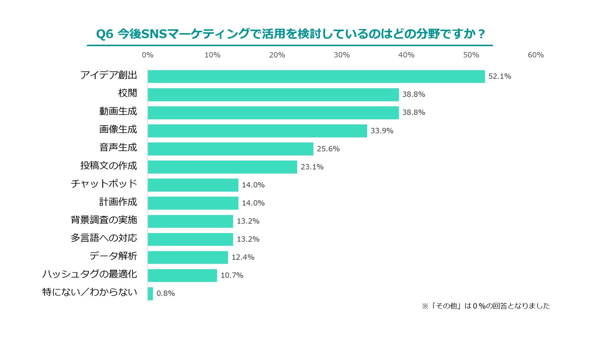 SNSマーケティングにおいてコンテンツの充実は重要であるため、人手の確保よりも、コンテンツの充実に直結する役割を生成AIに見出していると言えます。