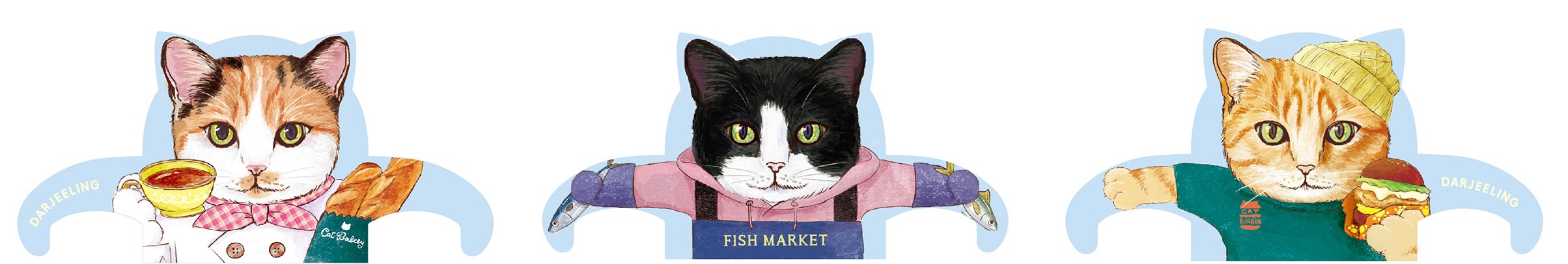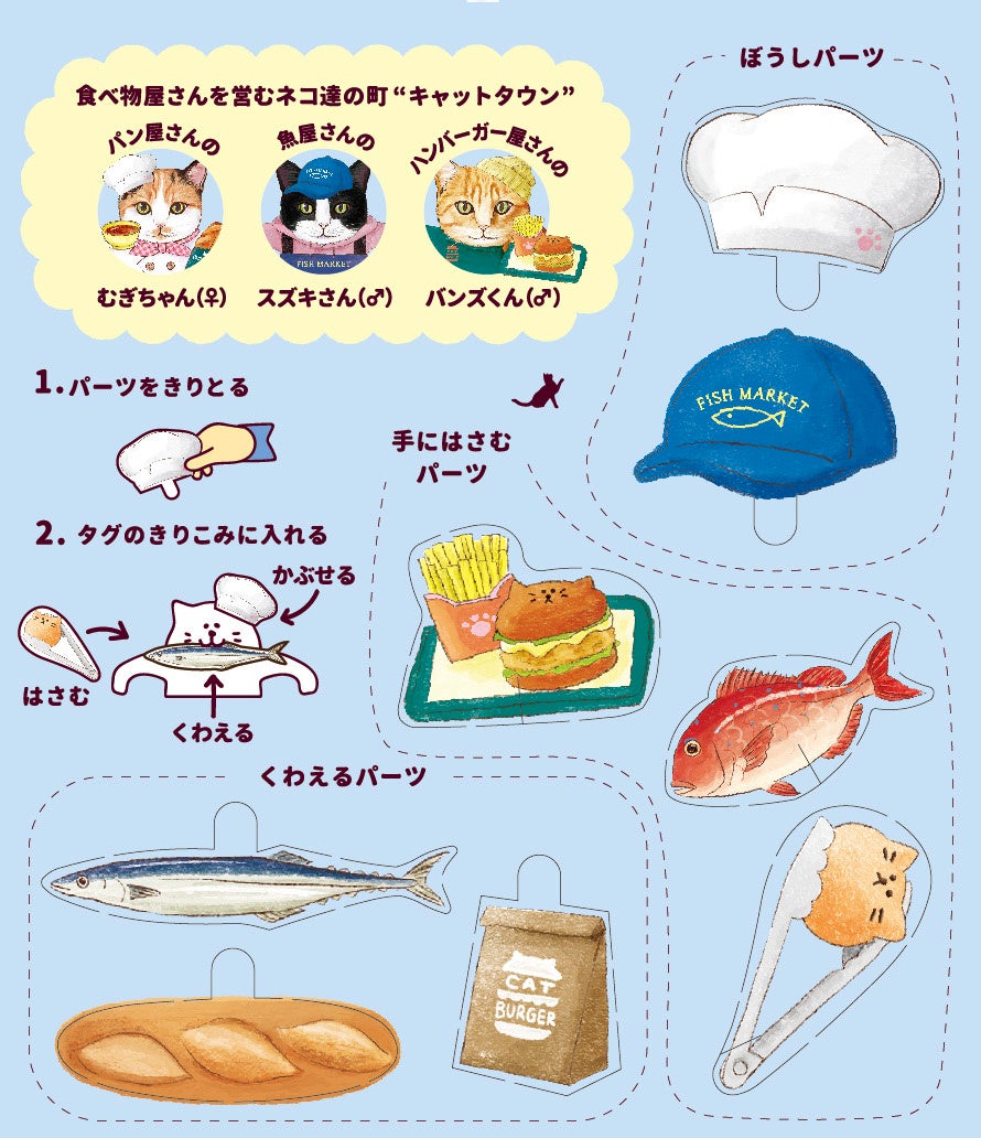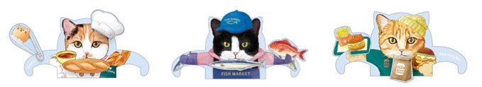 「キャットタウン」は『食べ物屋さんを営むネコ達の町』。パン屋さん、魚屋さん、ハンバーガー屋さんを切り盛りする3匹の個性的な店主ネコ達が、自慢の商品を元気よく販売しています。