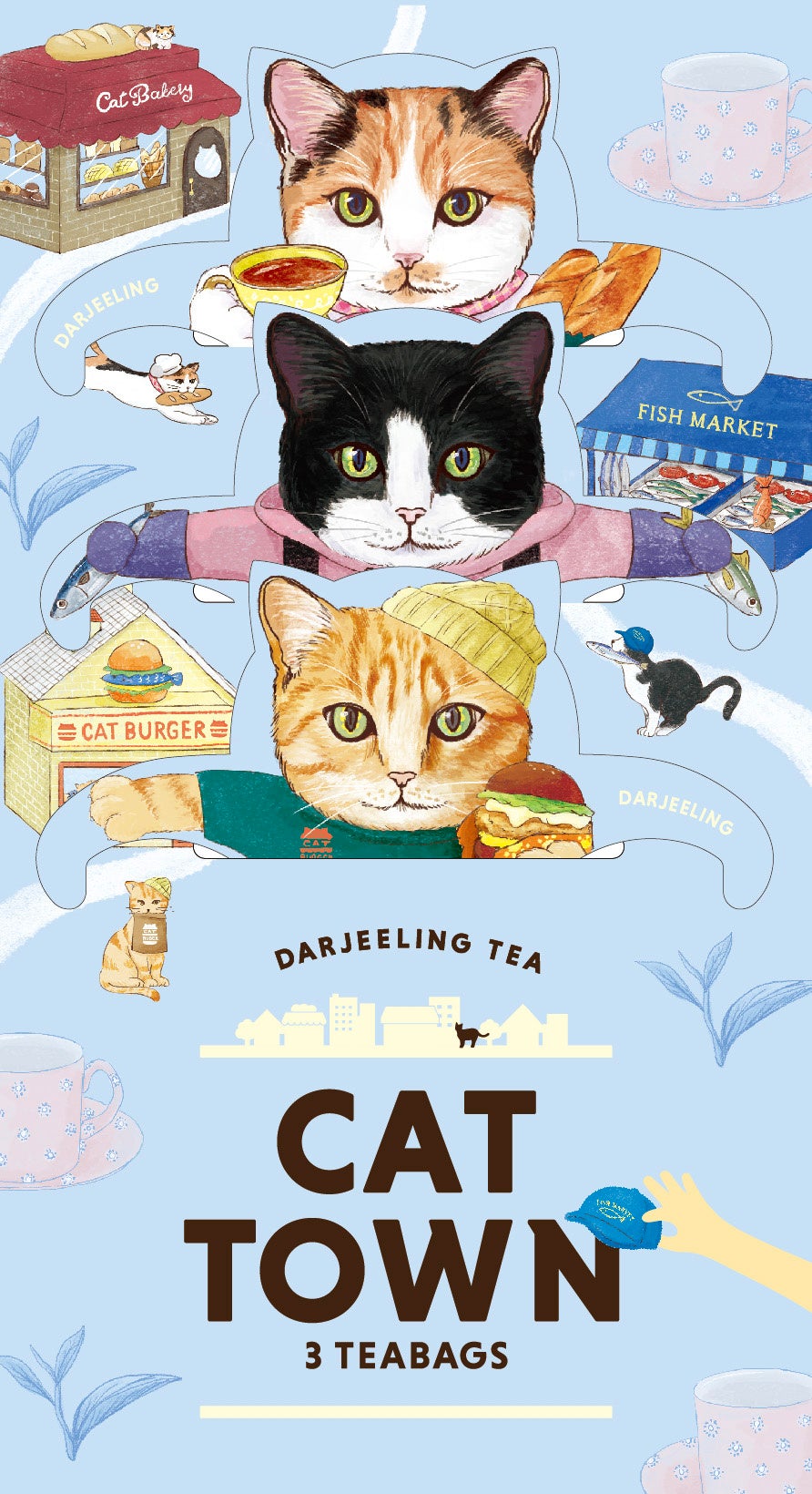 おうち時間が楽しくなるネコ&お茶アイテム!着せ替えができるユニークなネコ型ティーバッグ 食べ物屋さんを営むネコ達の紅茶「キャットタウン」新発売