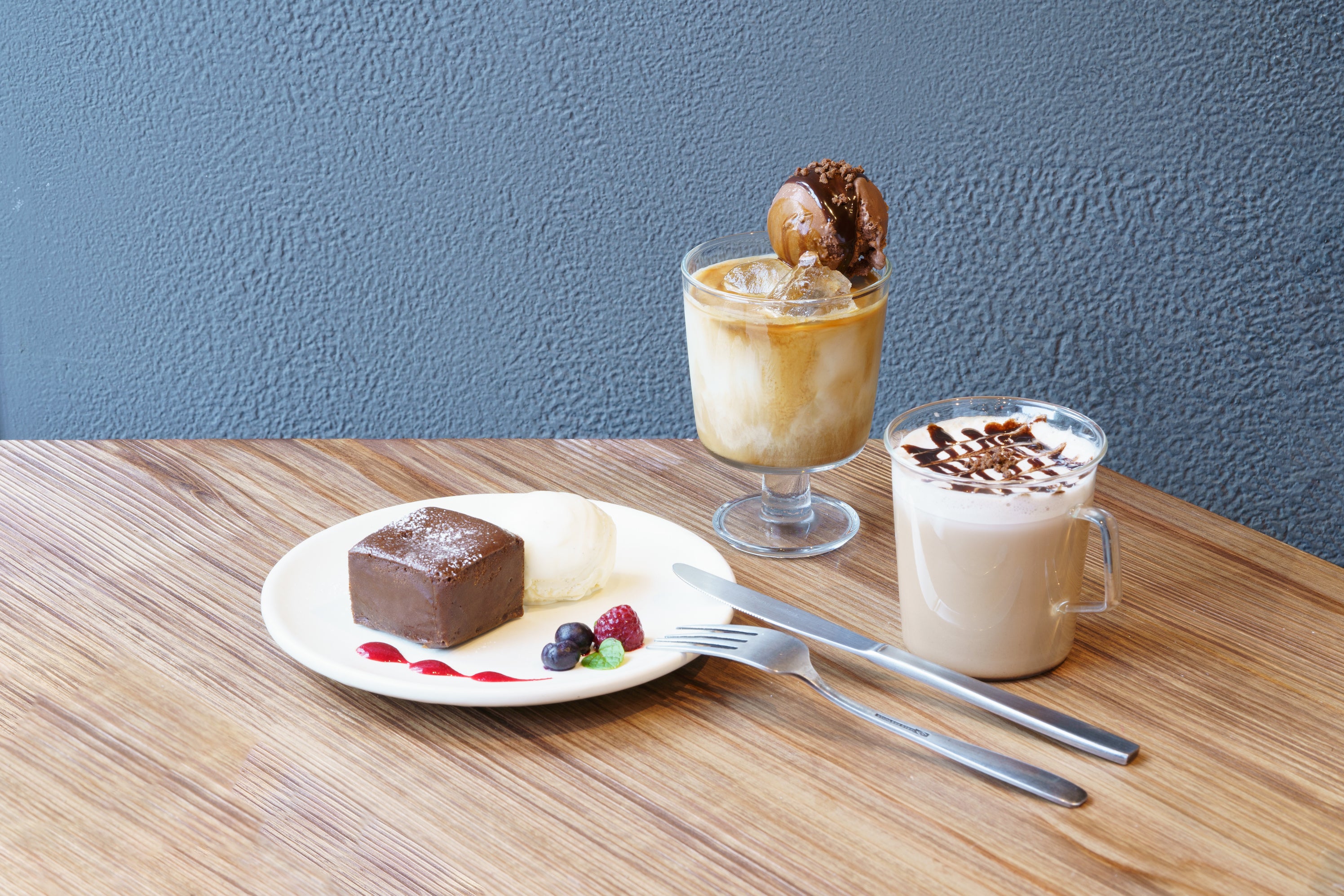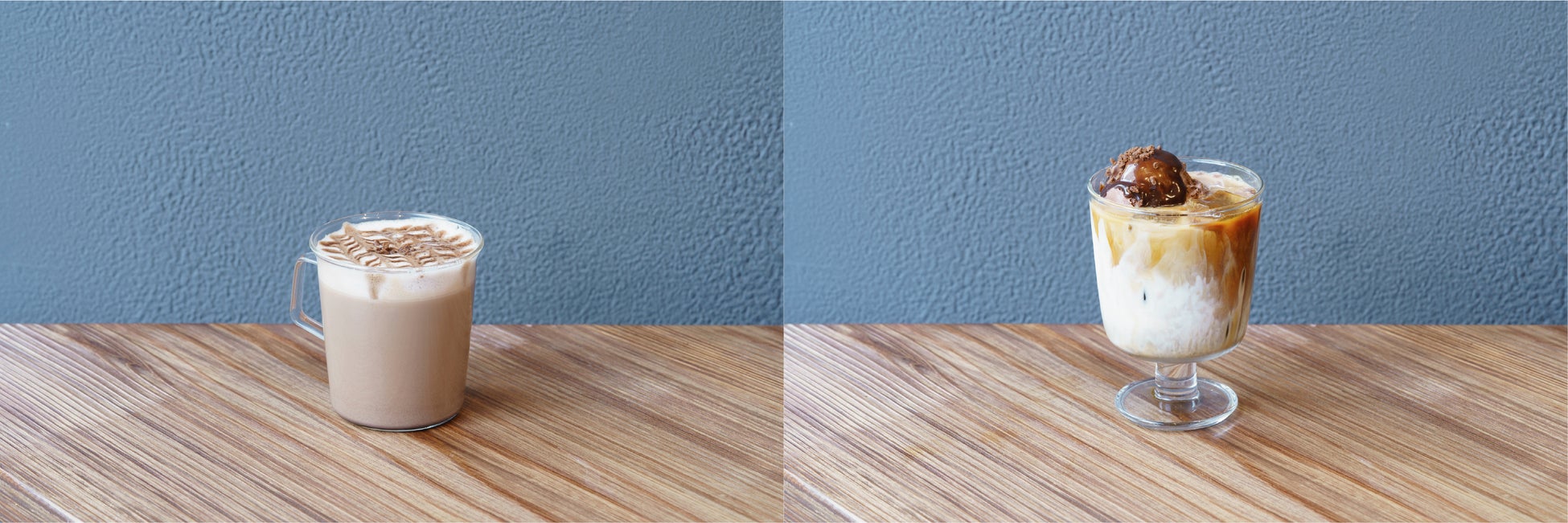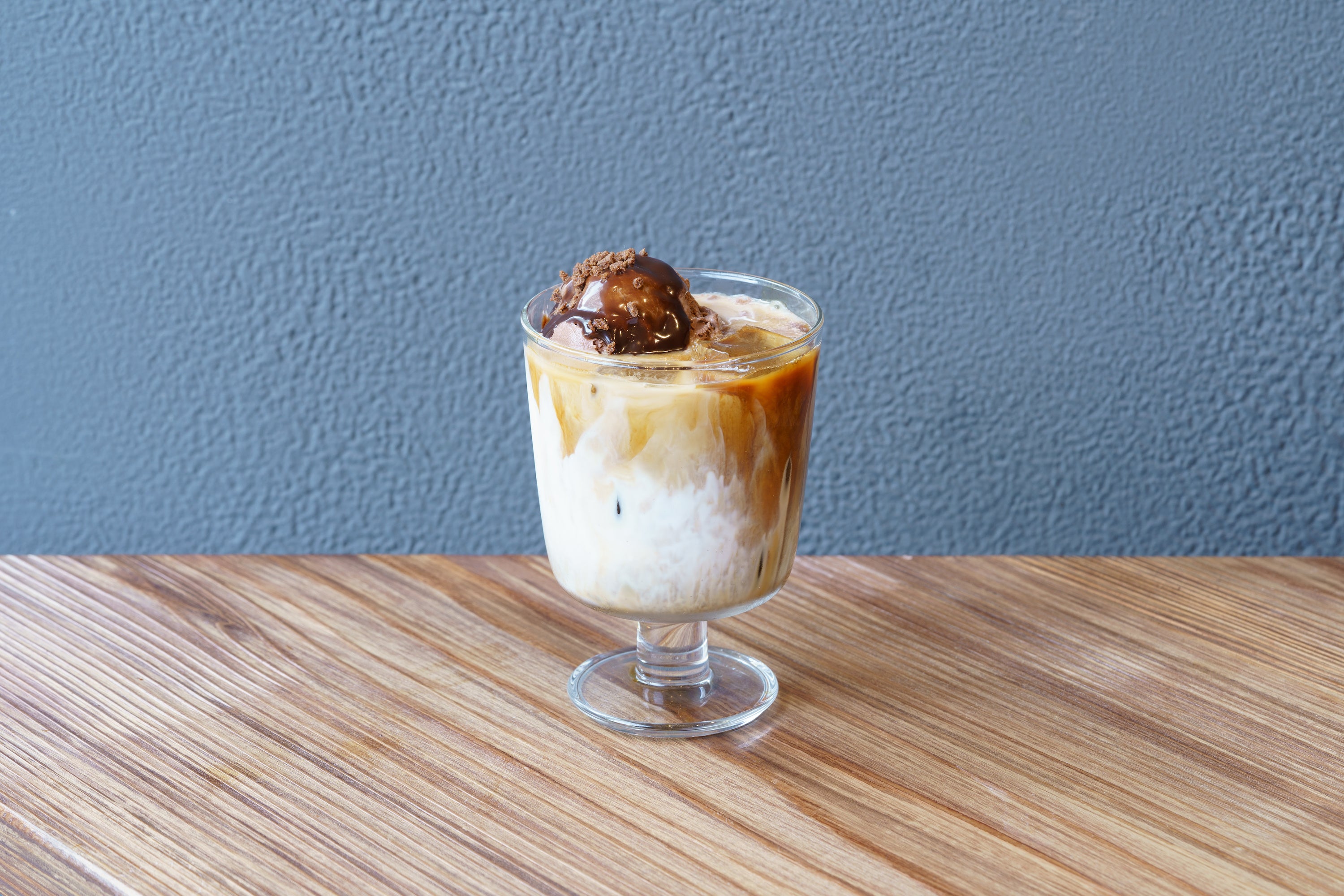 アイスクリームをトッピングしたチョコレートドリンク。別添えのエスプレッソをかけてお召し上がりください。
