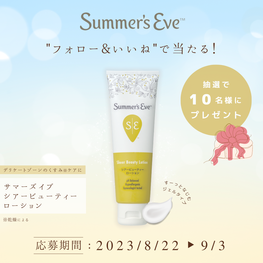 キャンペーン期間中に、サマーズイブ公式アカウント(@SummersEve_jp)をフォロー&キャンペーン投稿への“リツイート”で応募完了です。(URL:https://twitter.com/SummersEve_jp)