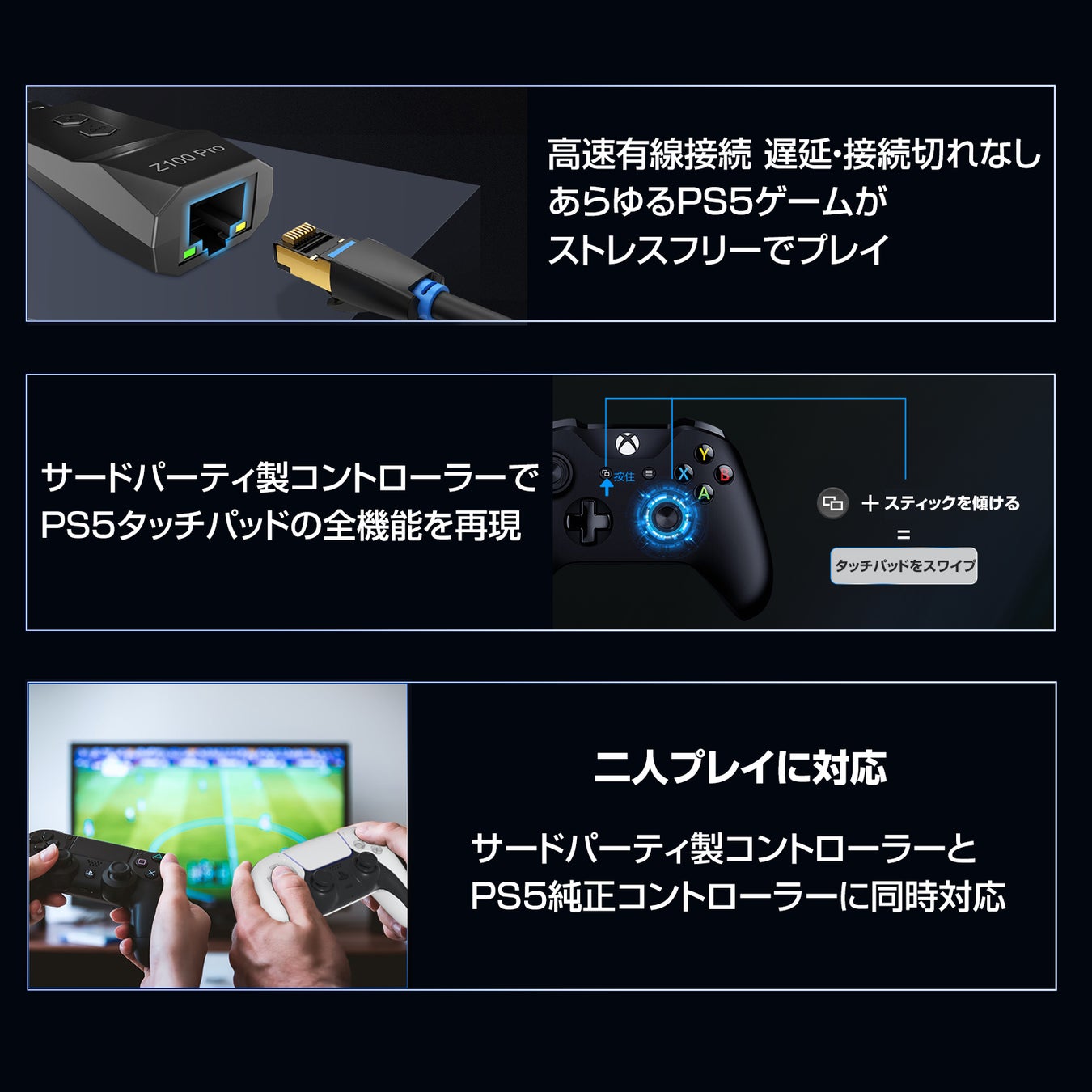 人気コントローラー(PS5・PS4・Switch Pro・Xbox Elite 2・Xbox One S・Xbox Series X/S)が、全てのPS5ゲームソフトでプレイできる!