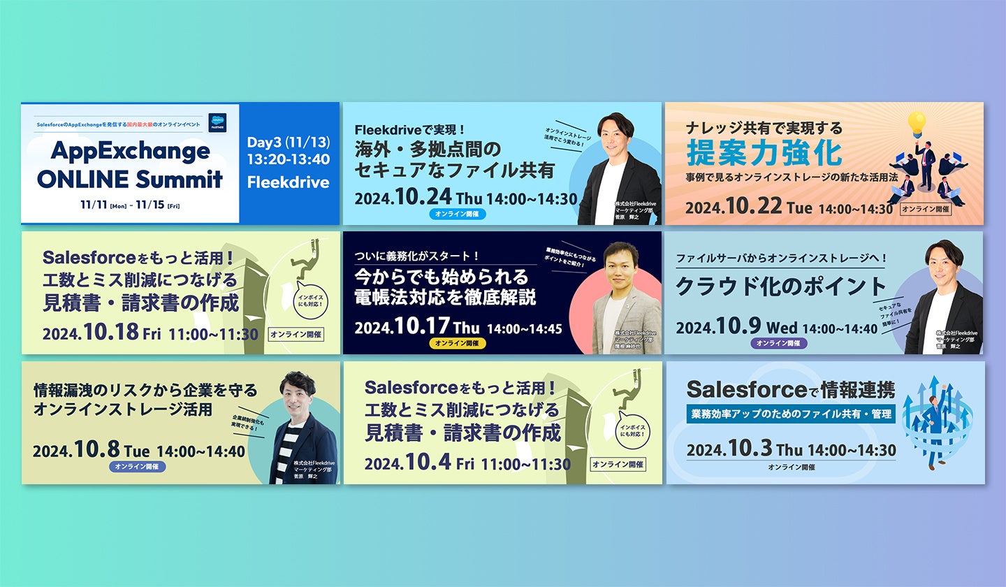 企業向けオンラインストレージ「Fleekdrive」、クラウド帳票サービス「Fleekform」を提供する株式会社Fleekdriveは、10月に以下のセミナー開催を予定しています。