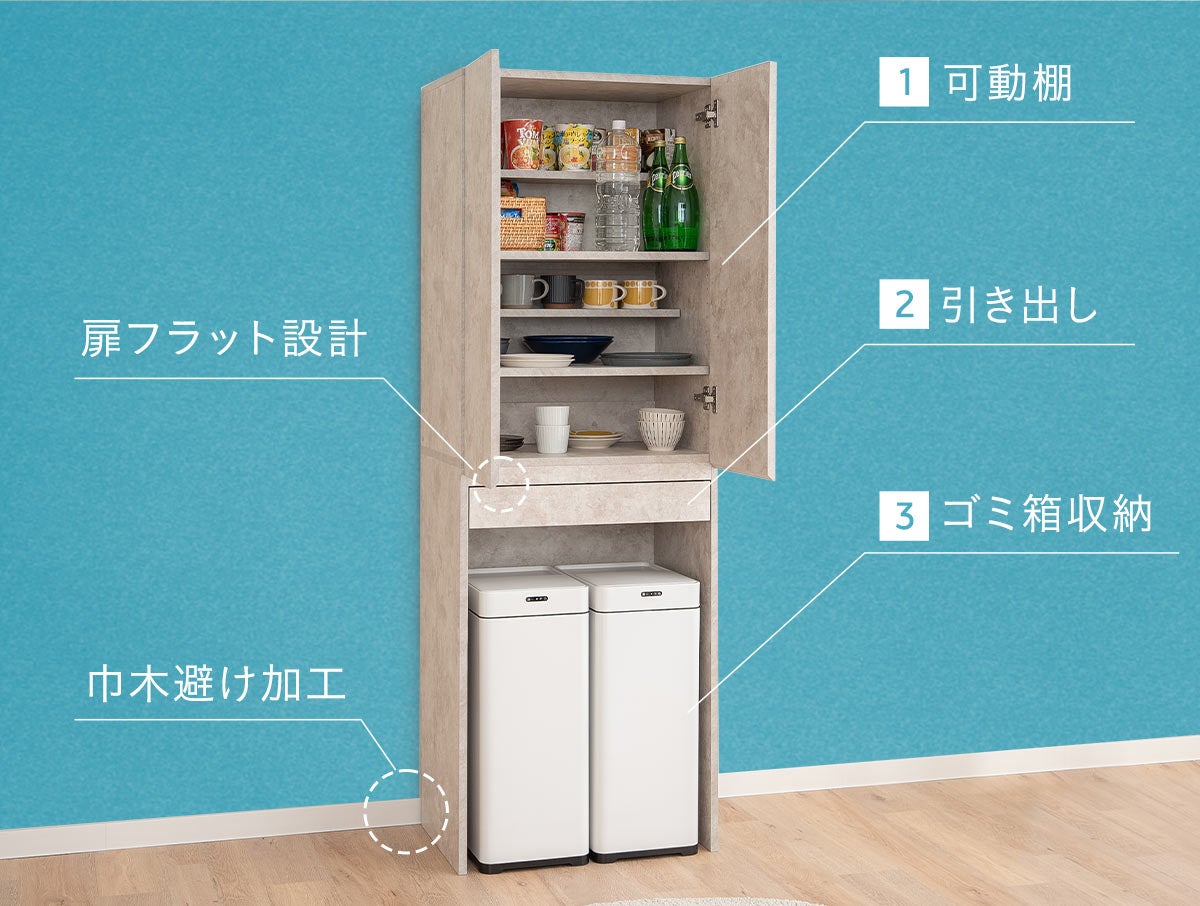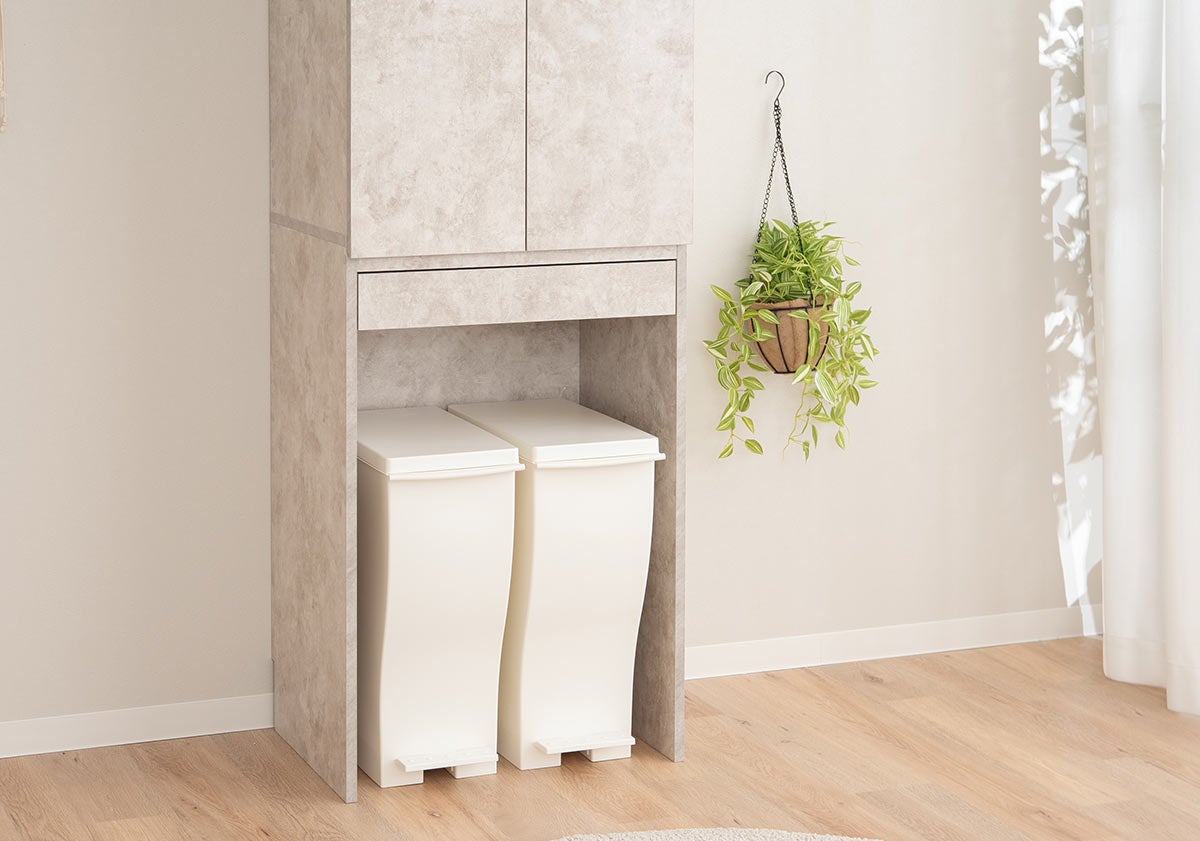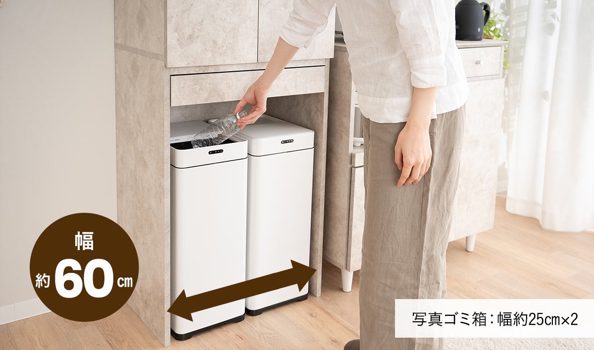 30L~45Lゴミ袋対応のゴミ箱が2つきれいに収納できる橫幅約60cm。