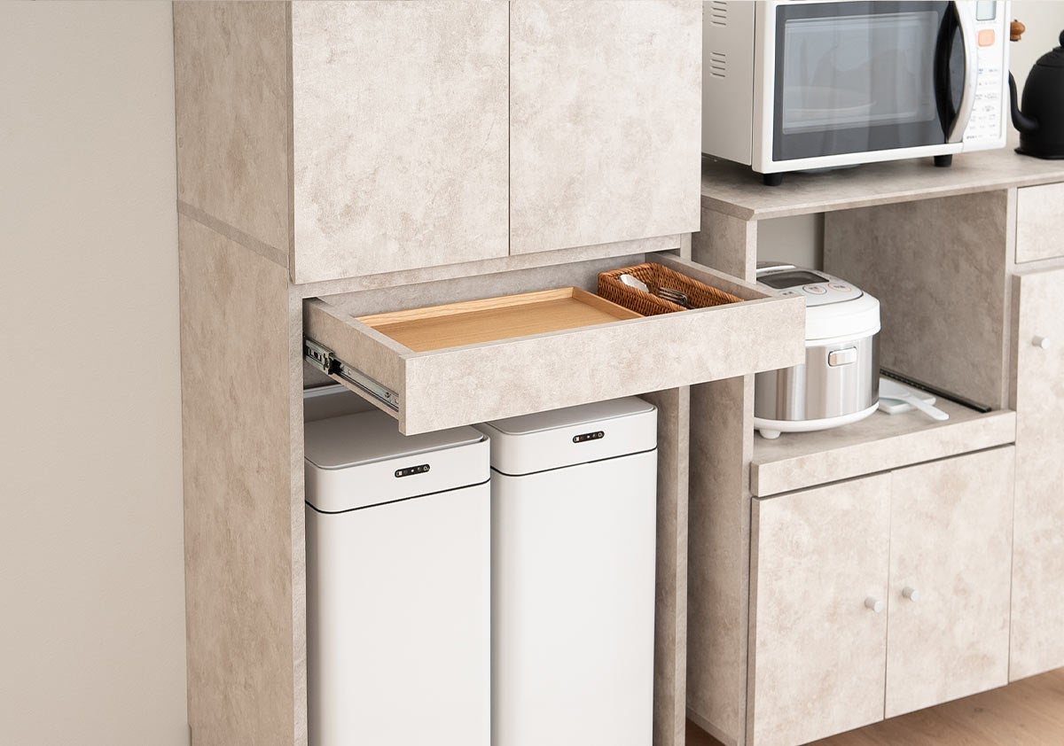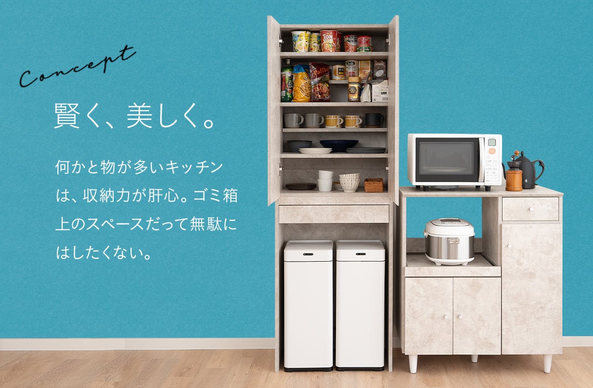 大容量かつ仕切りが自由な『ダストボックス上収納』が新発売!キッチン周りがこの一台でキレイすっきり!