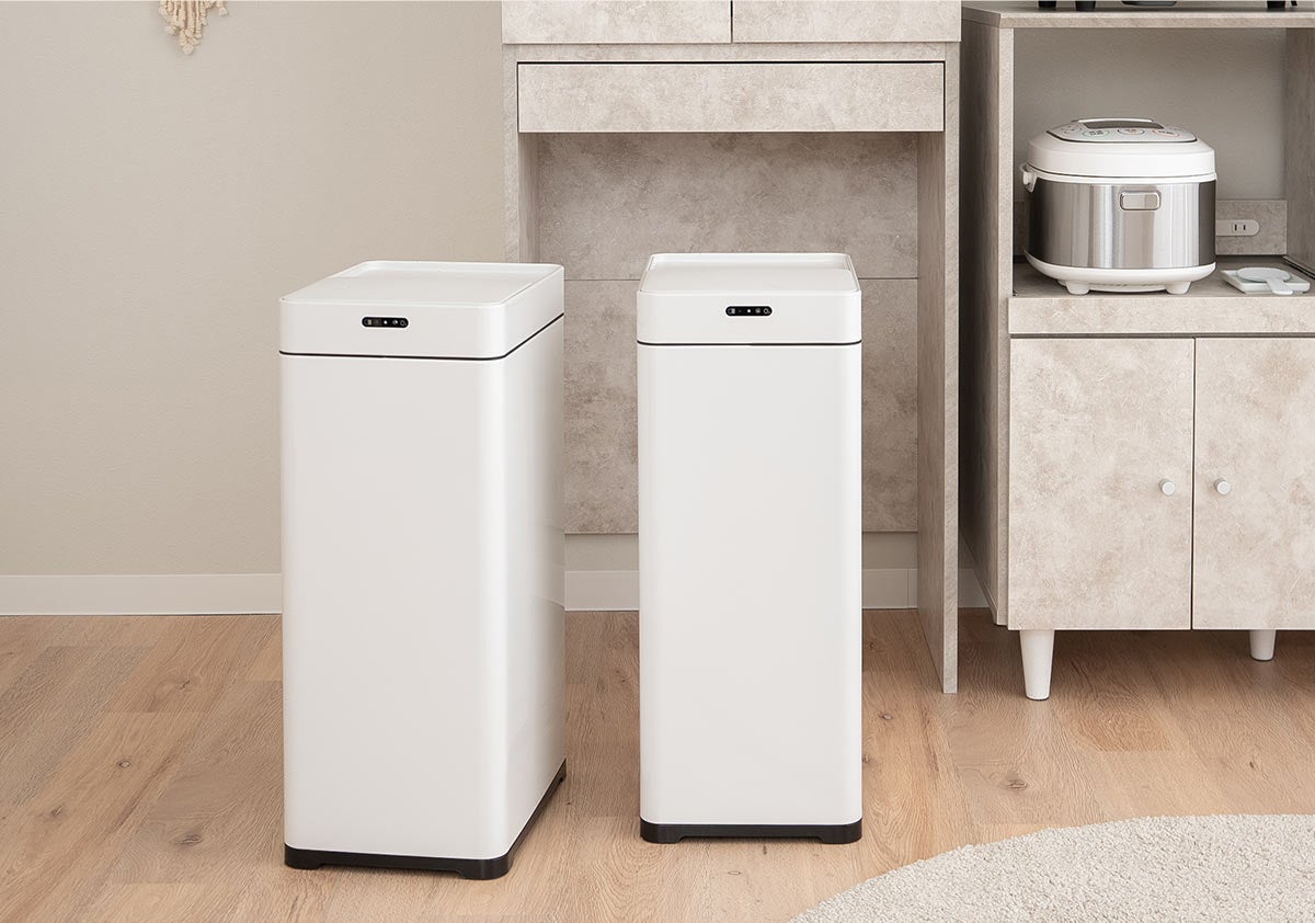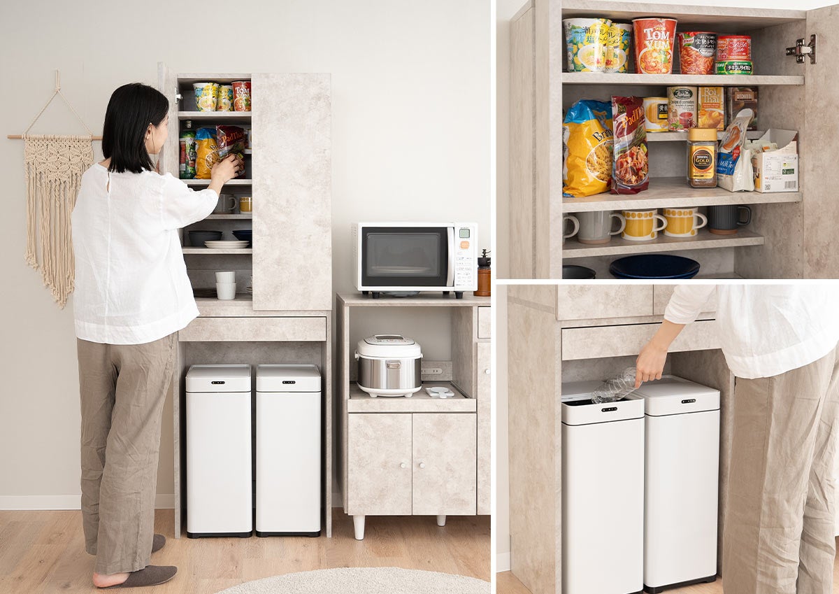 ゴミ箱が2個設置できる程の十分な幅があるので、ごみの分別時にも便利です。
