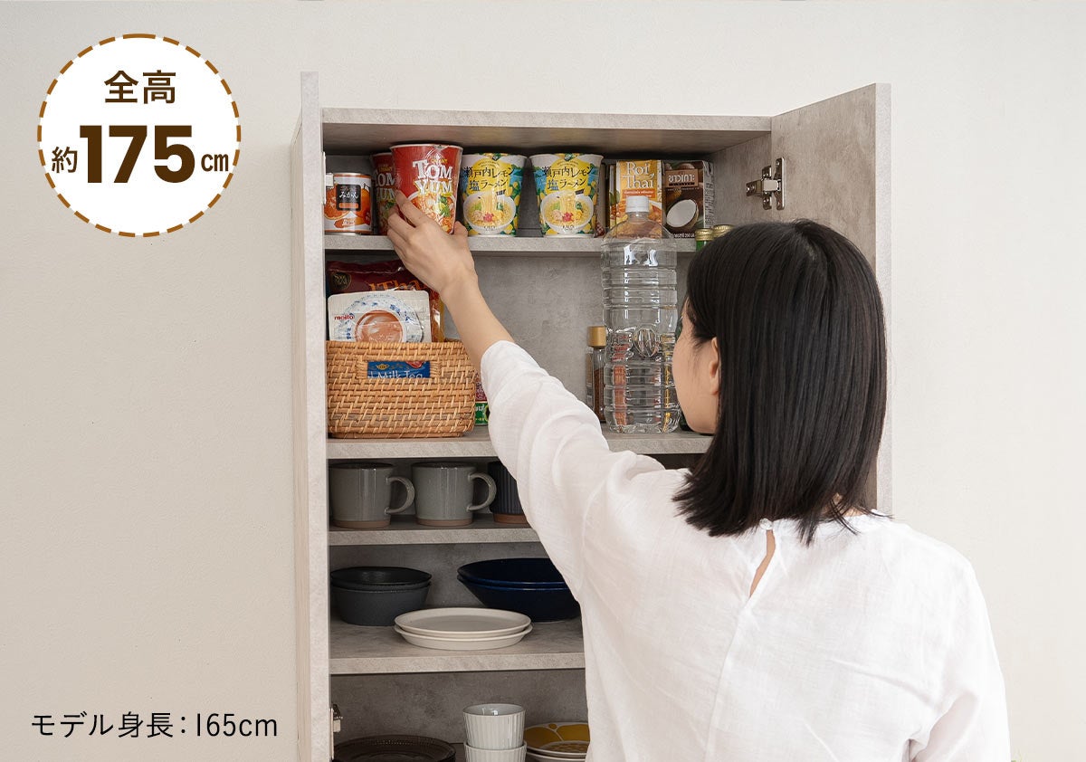 高さの異なる食器も、棚板を動かすだけで簡単きれいに収納!収納力抜群の一台です。