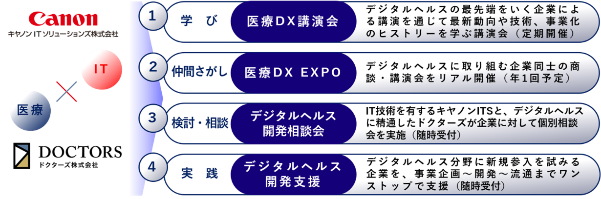 IT技術を有するキヤノンITSと、デジタルヘルスに精通したドクターズが、デジタルヘルス開発に関する個別
