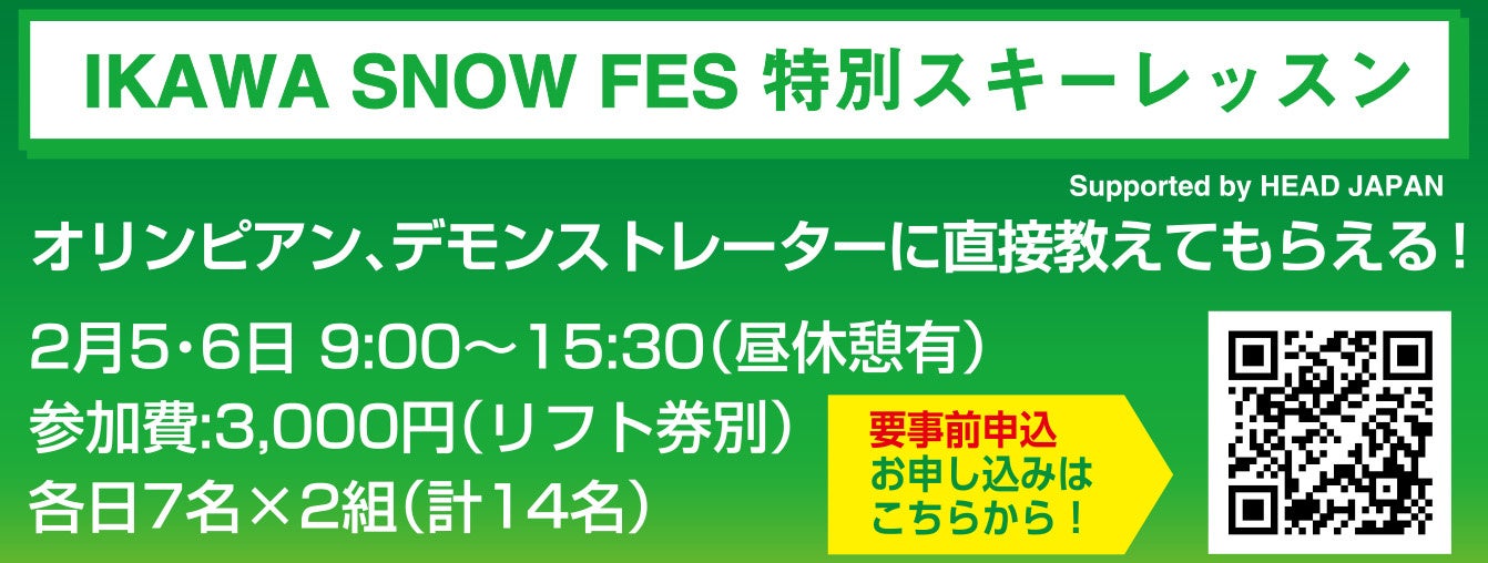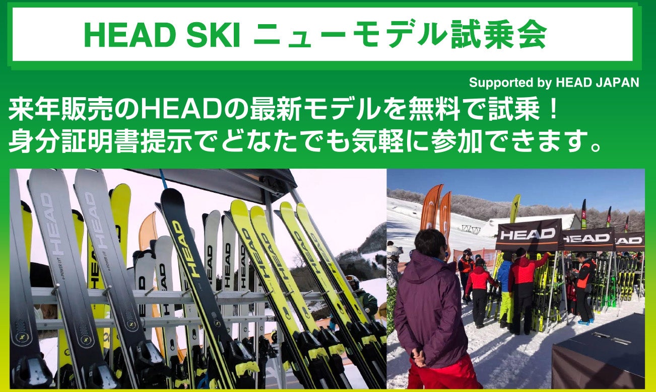 また、HEAD SKI ニューモデル試乗会やキッズ向け無料スキー・スノーボードレッスンも同時開催! 2日間共に楽しいイベントが盛りだくさんです。