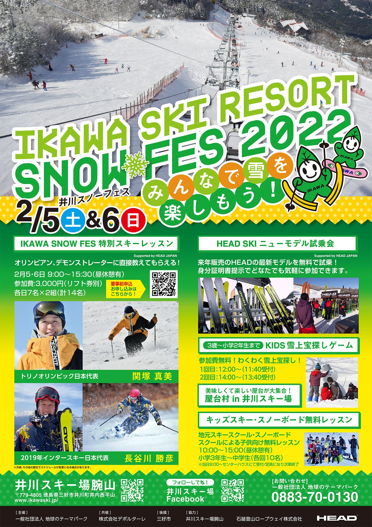 徳島県三好市の『井川スキー場 腕山』にオリンピアンがやってくる!! 特別スキーレッスンの他、宝探しゲームなど、キッズも大満足なイベントを開催。