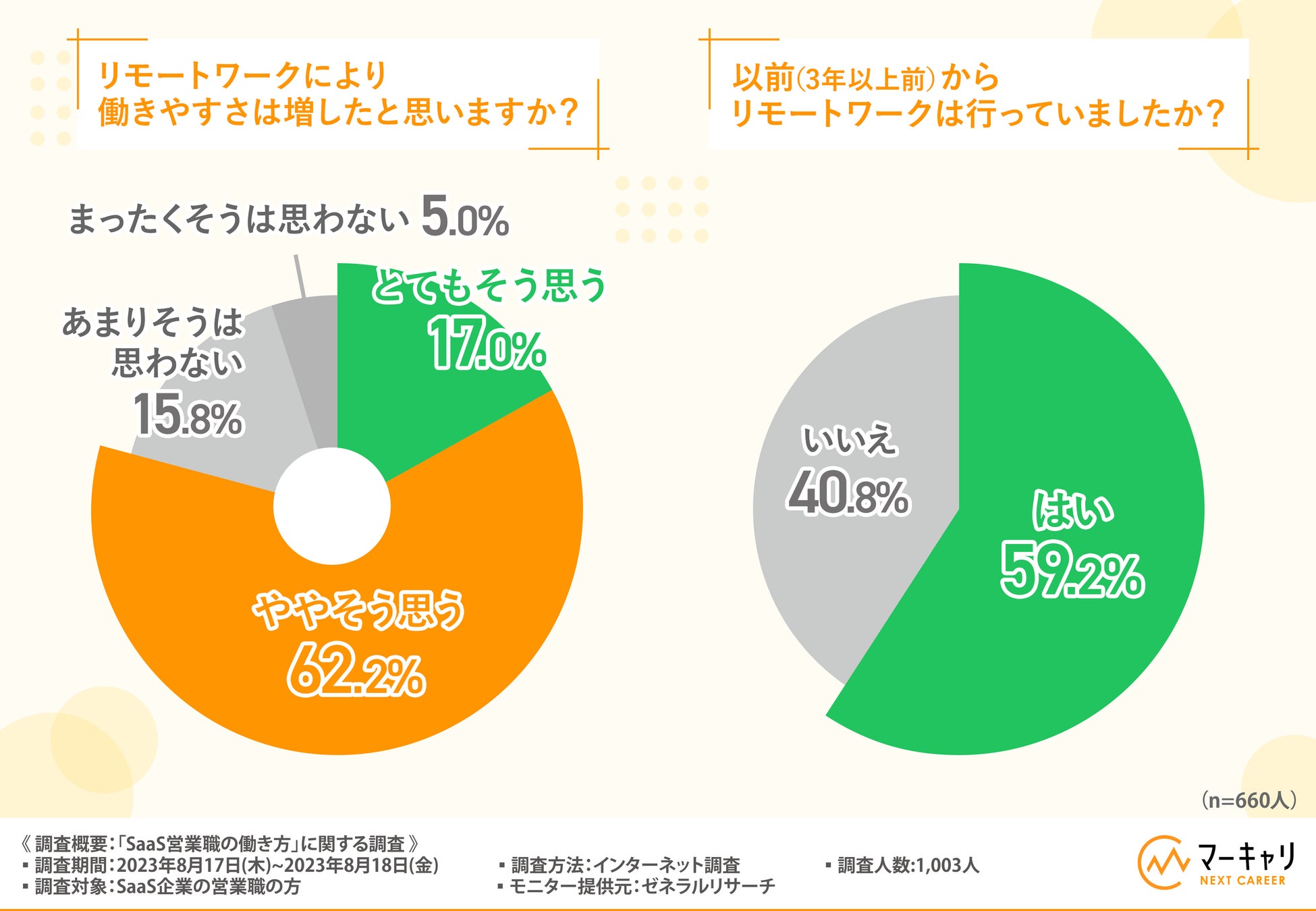 【SaaS営業職の働き方に関する調査】およそ8割の方がリモートワークにより働きやすさが増したと回答!