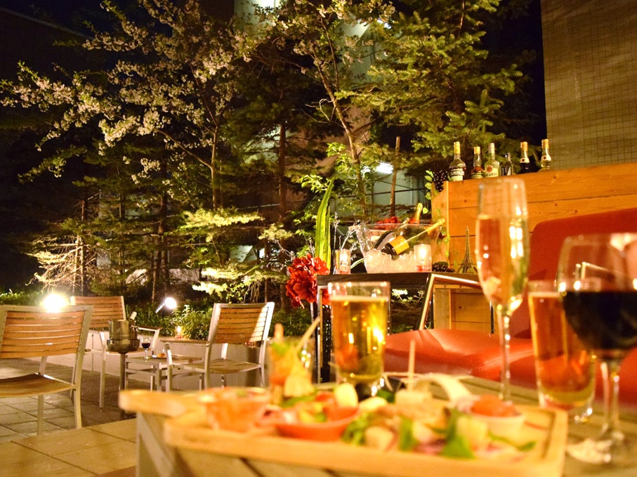 2019年より営業を開始した「ラ・テラス」は、頭上に広がる空とライトアップされた木々、そして建物に囲まれた立地と構造により、「隠れ家のように快適」とご好評頂いております。