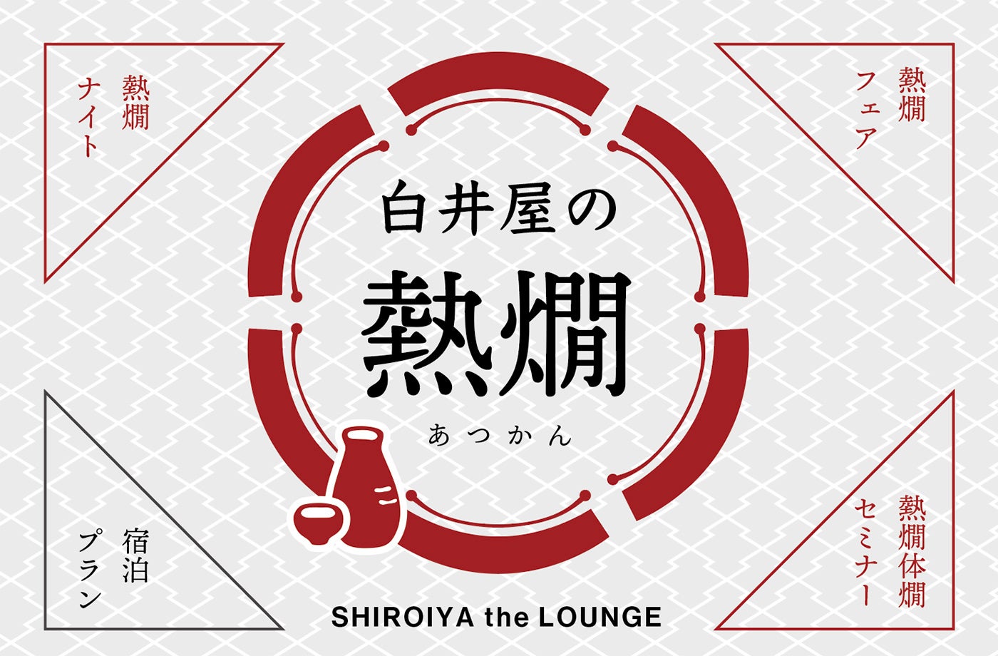 前橋のアートデスティネーション「白井屋ホテル」を運営する白井屋ホテル株式会社(群馬県前橋市本町、代表取締役:矢村功)は、熱燗師の高崎丈氏を招聘し、熱燗の魅力をご堪能いただく「熱燗師、高崎丈が伝える熱燗の魅力」と題した『熱燗フェア』、『熱燗ナイト』、『熱燗体燗セミナー』をホテルの「ザ・ラウンジ」ならびに「真茶亭」にて開催いたします。2022年1月21日(金)から3月31日(木)まで、群馬の地酒をもっとも美味しく飲んでいただくために、熱燗師の高崎丈氏が監修するお酒とザ・ラウンジの食のマリアージュをお楽しみいただく機会『熱燗フェア』をもうけます。また、2月22日(火)には高崎氏自らが燗をつける『熱燗ナイト』を、翌日2月23日(祝・水)には高崎氏による『熱燗体燗セミナー』を開催します。