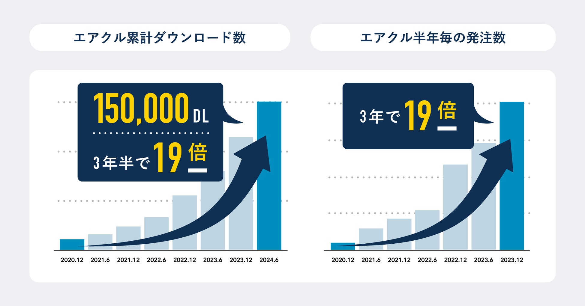 リリースから約4年、エリアの拡大とともに、サービスの品質を徹底的に向上し続けてまいりました。より快適で迅速なサービスを提供するための取り組みが実り、エアクルは成長を遂げています。