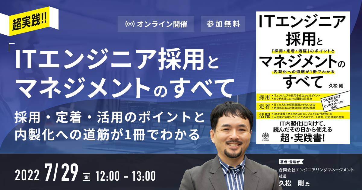 【Offersデジタル人材総研 無料オンラインセミナー】7月29日(金)12時〜「ITエンジニア採用とマネジメントのすべて~採用・定着・活躍のポイントと内製化への道筋が1冊でわかる~」を著者が解説