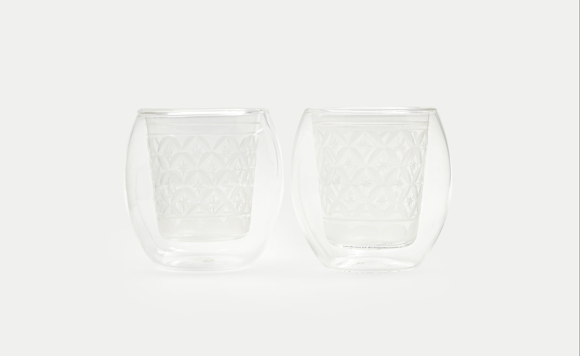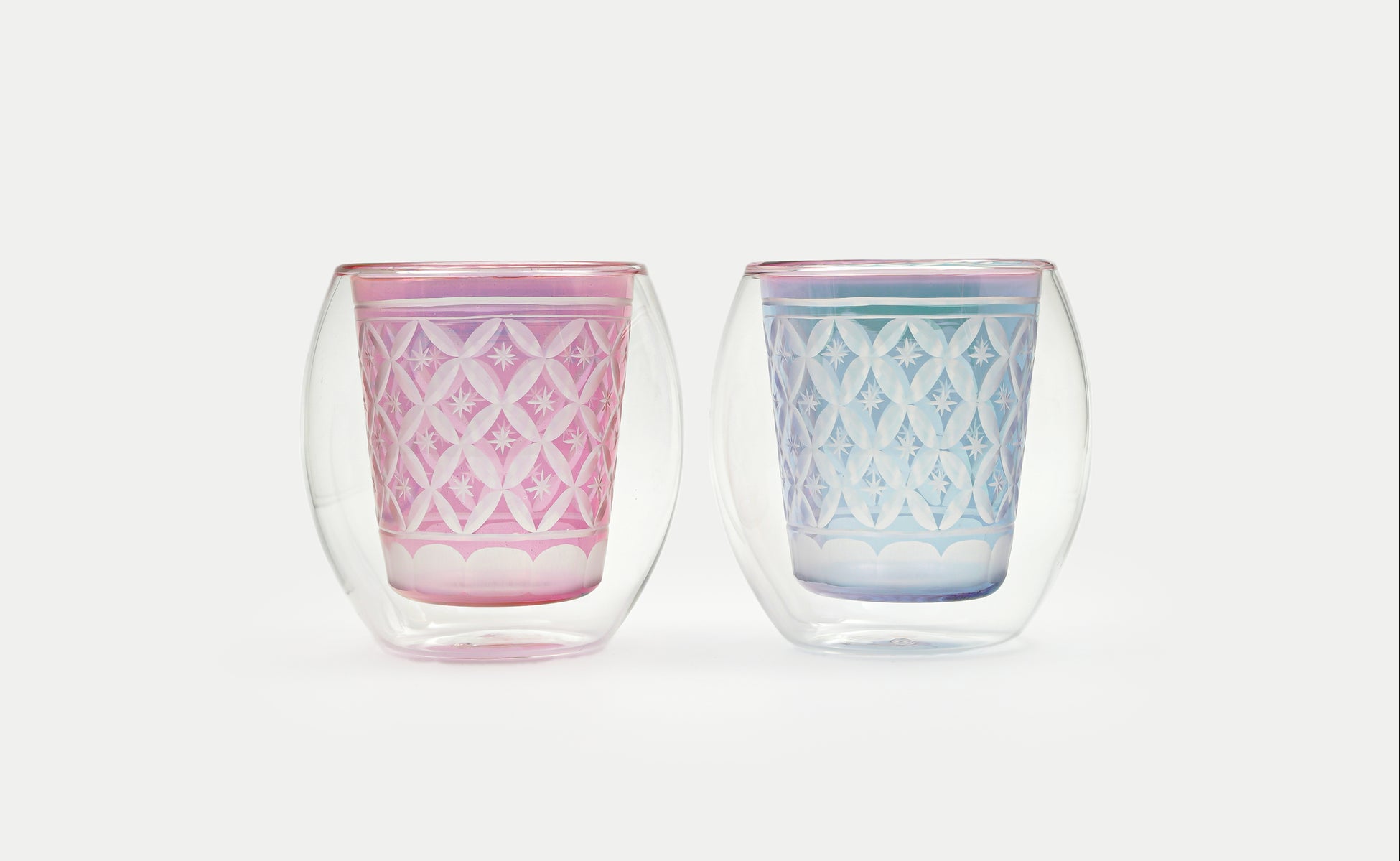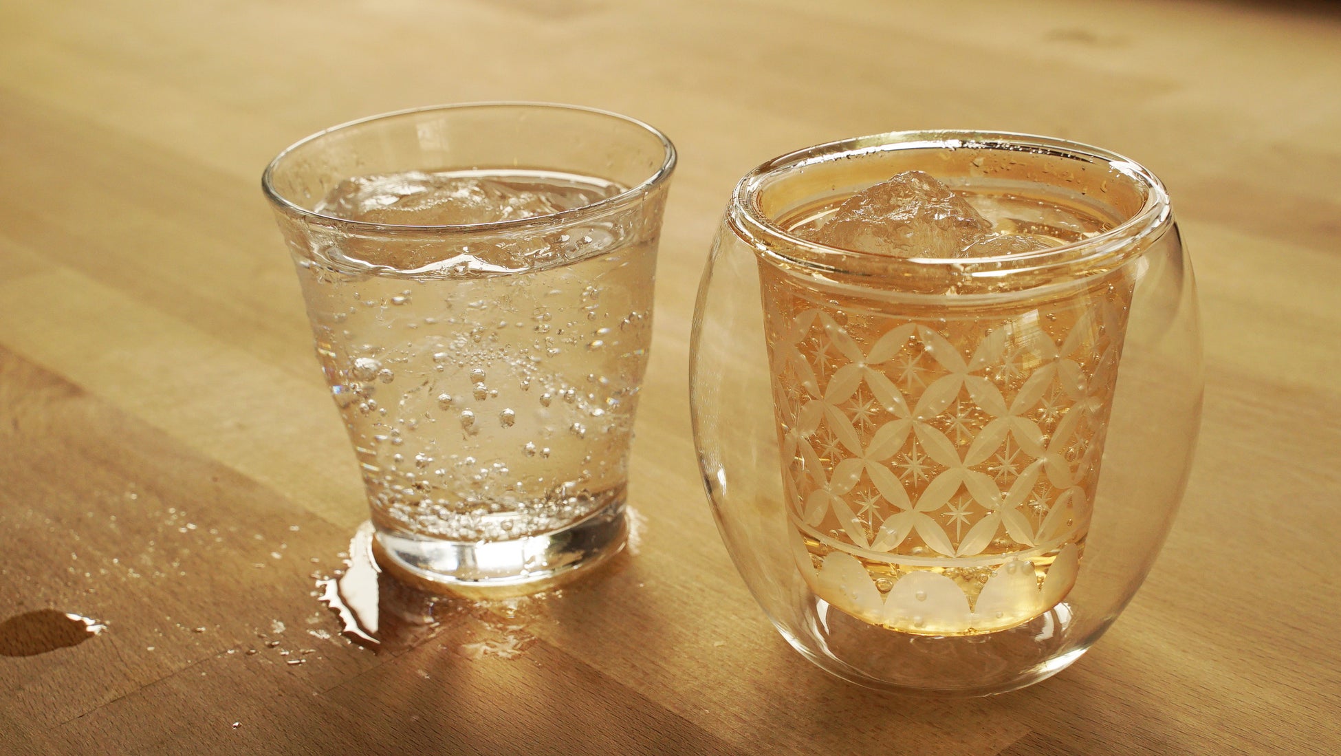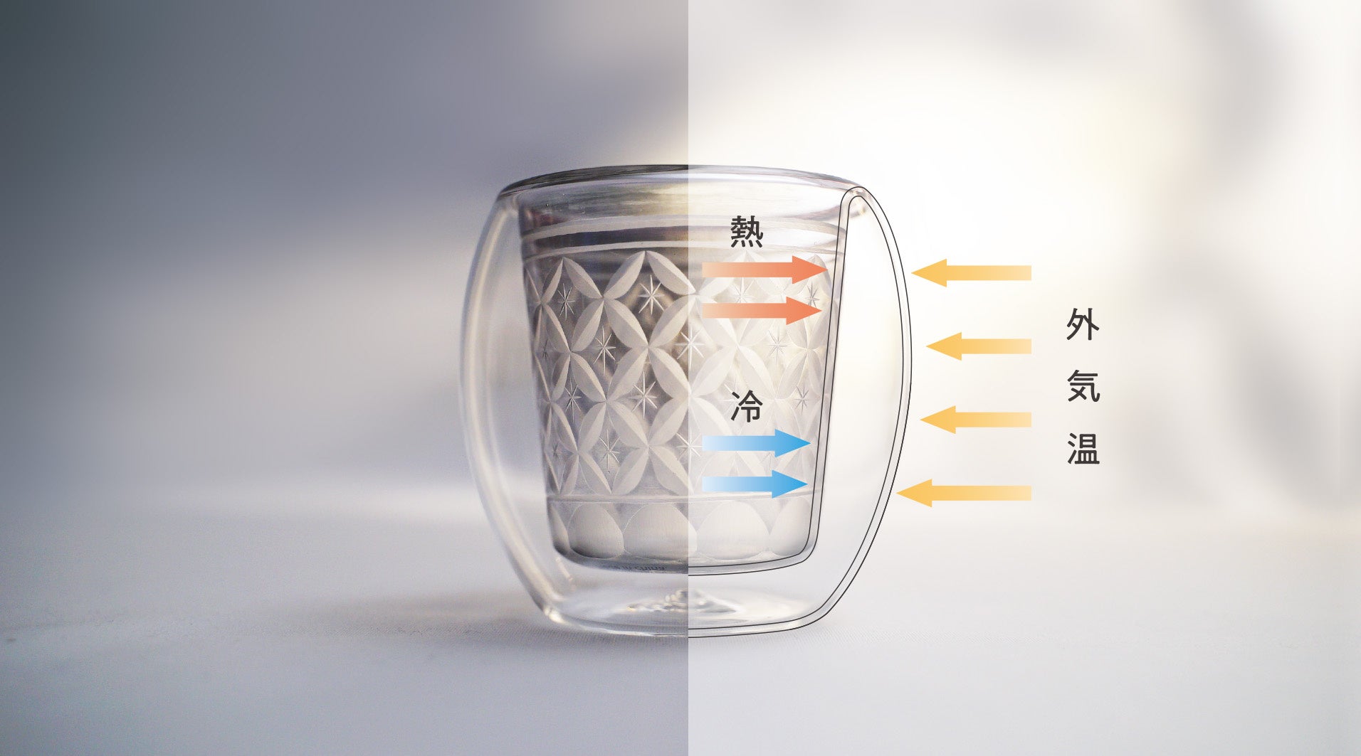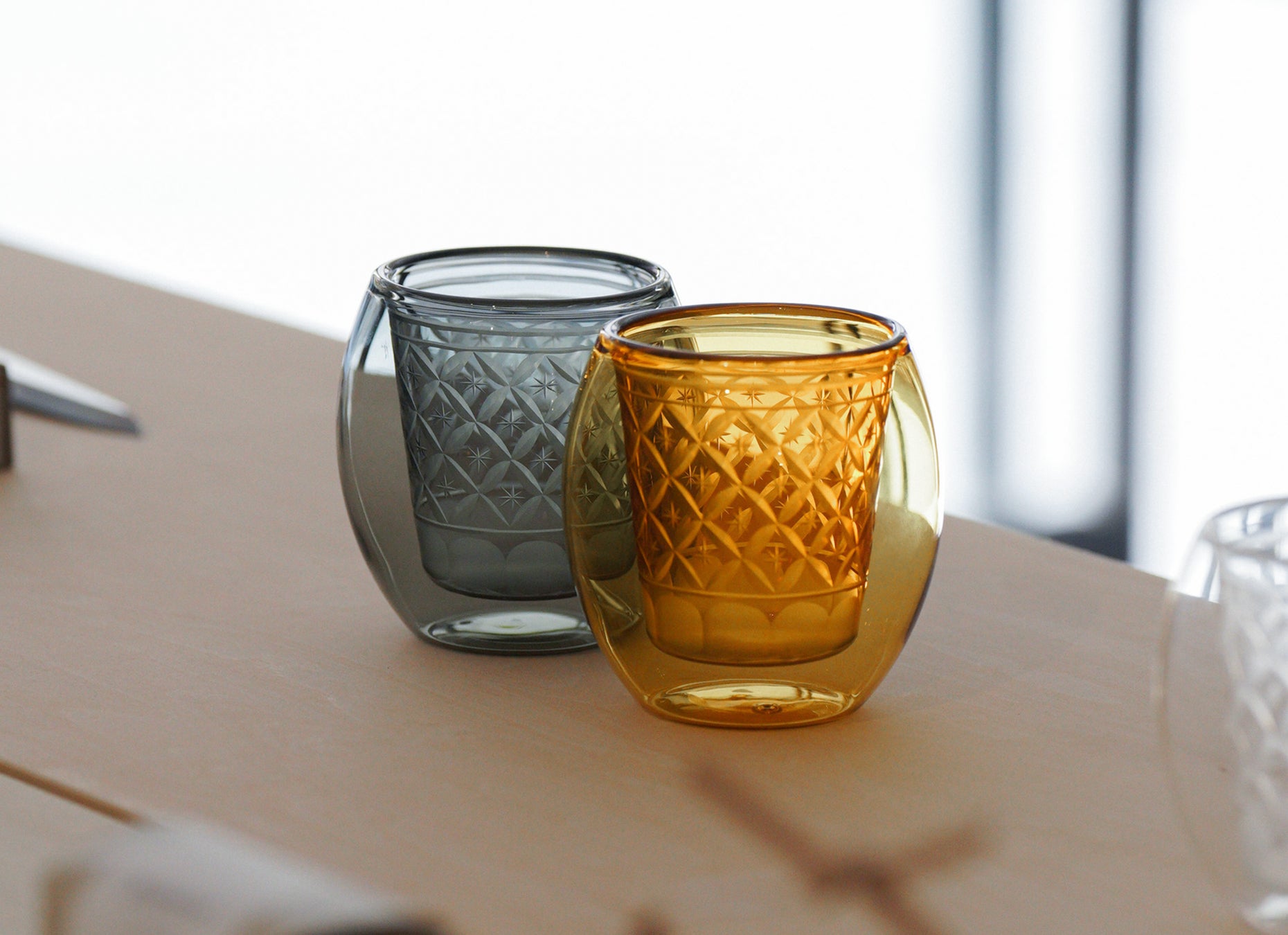 切子は、ガラスの表面にカットを入れる技術のことです。切削を意味する「切」と、その際に出る粉を表す「子」で出来た造語。従来、ダブルウォールグラスで使用される耐熱ガラスへの切子加工は、技術的に困難とされてきました。しかし、切子グラスの魅力をより身近なものに感じられる商品にしたい。という想いから、試行錯誤を重ね、現代技術であるダブルウォール構造を取り入れた、“次世代切子グラス”へのアップデートが実現しました。