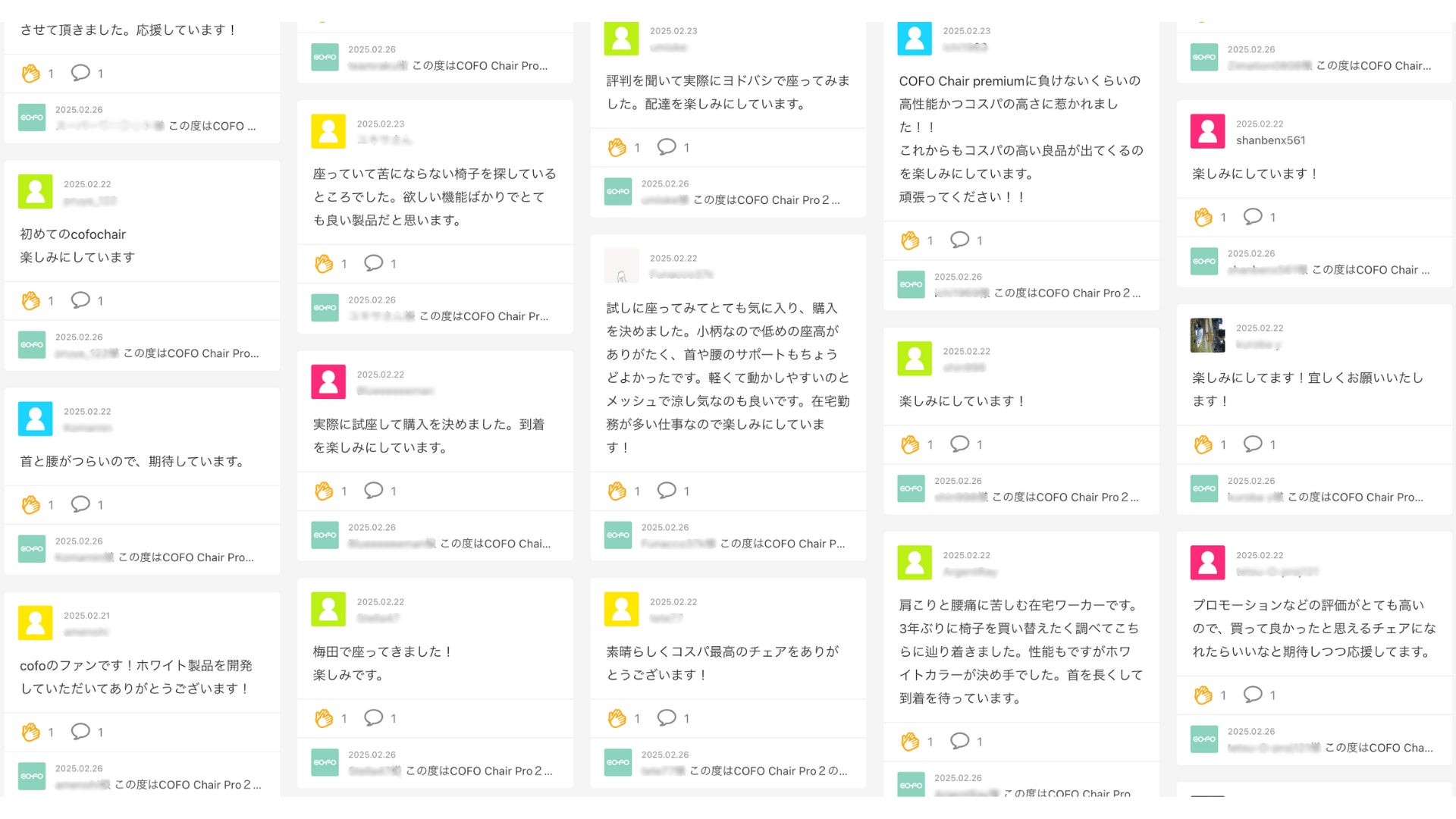 ”ずっとCOFOチェアが欲しいと思っていました!期待しています!”