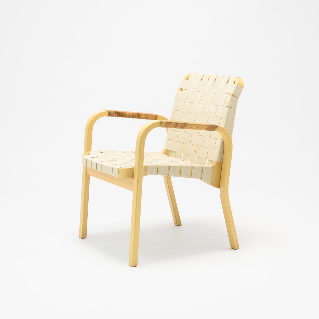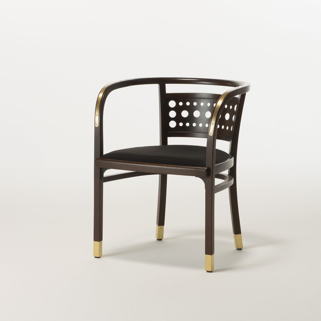 このアームチェアは、ウィーン郵便貯金局の会議室のためにデザインされたものです。この貯金局では役職ごとに椅子のデザインを変えていました。椅子を見ればその役職が分かるという、椅子の持つ精神的な意味「地位を表す」を具現化した世界初の例です。椅子の背から肘へ、さらに前脚へと続くラインは1本の曲木で生み出されたものであり、世界で初めてのデザインとなっています。