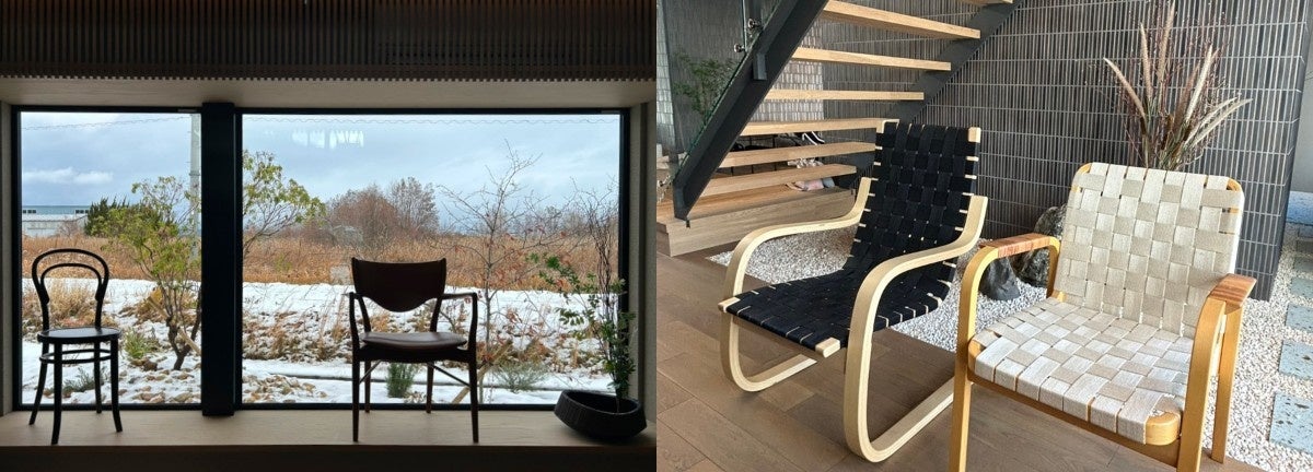 本展の特徴のひとつは、実際の暮らしを想定したモデルハウスで展示を行うことです。建築と家具が一体となった空間に足を踏み入れることで、椅子そのものが持つデザイン性や機能美だけでなく、日常生活に溶け込む魅力を体感していただけます。
