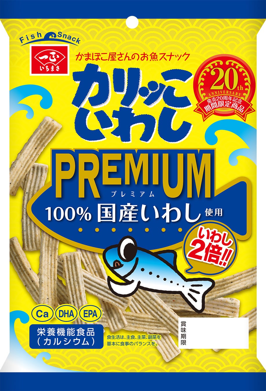 一度食べたらクセになる!大人気のお魚スナックいちまさの「カリッこいわし」が発売20周年!いわし量が2倍の「カリッこいわし プレミアム」を発売