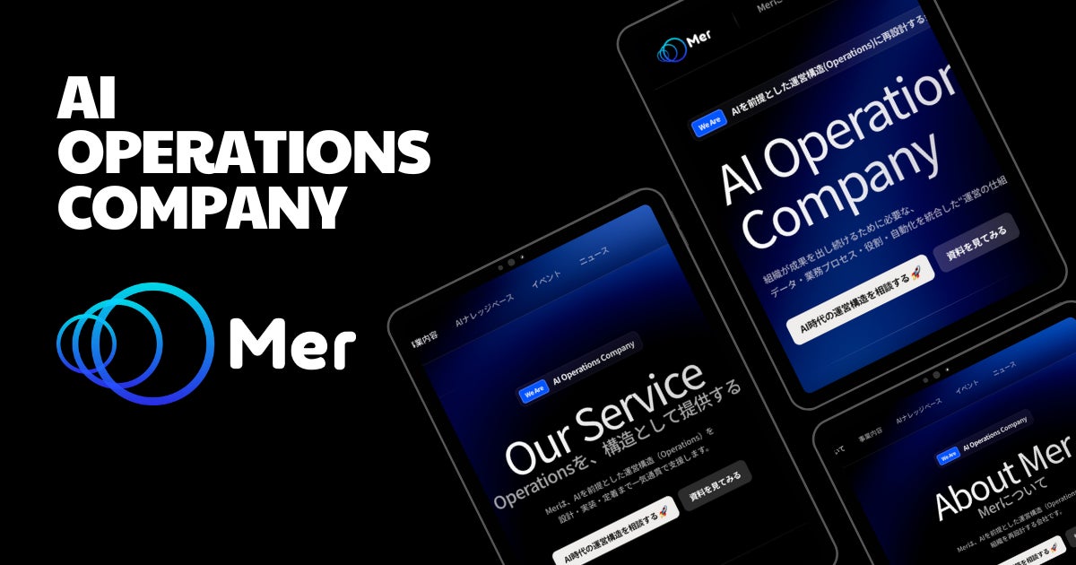 株式会社Mer(本社:東京都渋谷区、代表取締役:澤口友彰)は、AI・SaaSツール導入後に多くの企業が直面する「ツールはあるが成果が出ない」という構造的課題に対し、業務・データ・役割を統合した『AI Operations』という概念と実践フレームワークを体系化。2026年1月7日、その思想と方法論を伝える公式ホームページ(https://www.merinc.co.jp/)を全面リニューアル公開しました。
