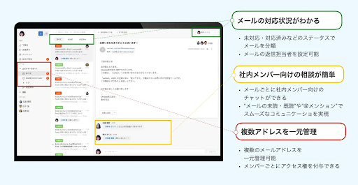 「yaritori」は、対外的な顧客対応を担う営業・CSのための顧客対応プラットフォームです。「複数メールの対応状況をチームで一元管理」「Slack・Chatwork連携」などで社内外のコミュニケーションを効率化し、迅速な顧客対応を実現できます。