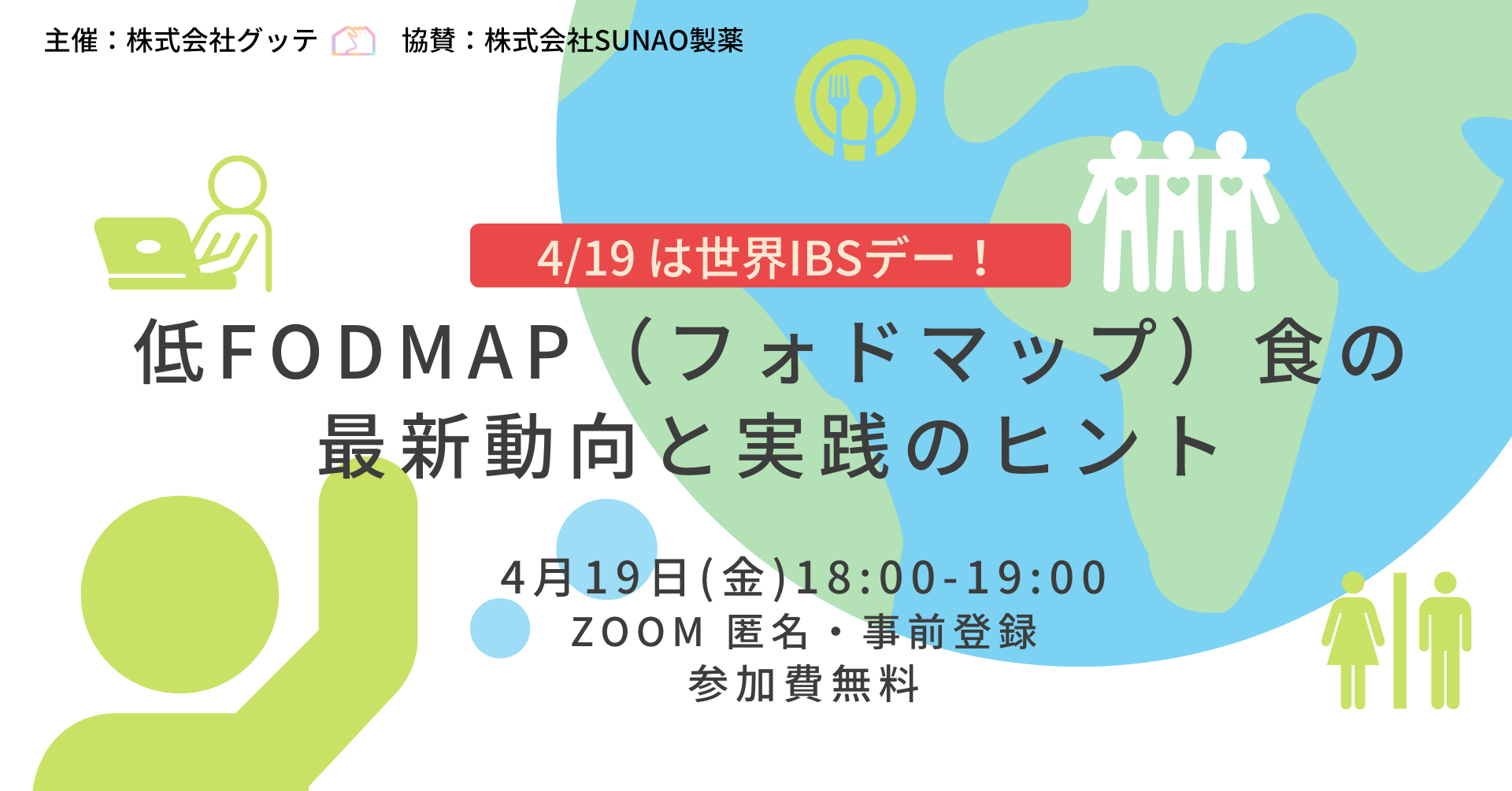 世界IBSデーに合わせたオンラインイベント「低FODMAP(フォドマップ)食の最新動向と実践のヒント」を過敏性腸症候群(IBS)向けレシピサイト「グッテレシピ」を運営するグッテが開催(4/19)