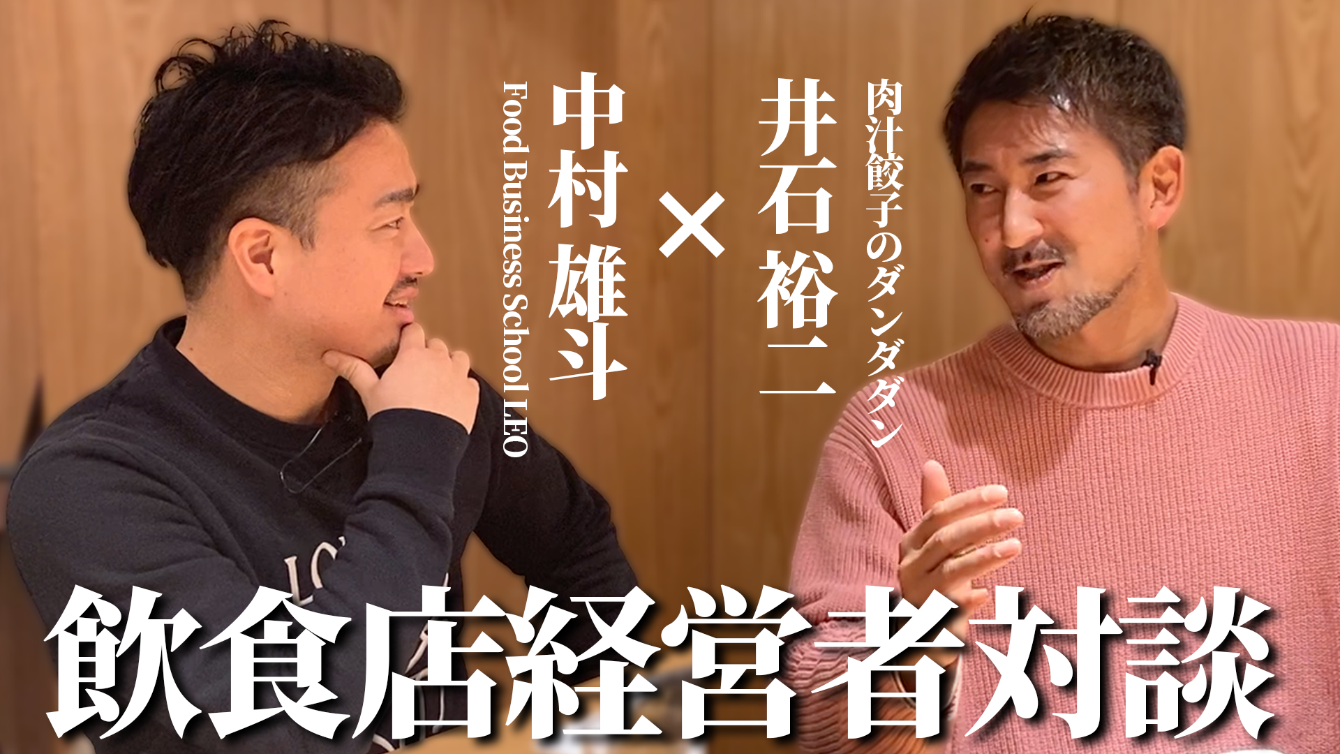 飲食店経営の全てが学べるオンラインスクールLEOチャンネル登録2万人突破記念|井石裕二氏(肉汁餃子のダンダダン創業者)×中村雄斗による飲食店経営者対談動画を公開。