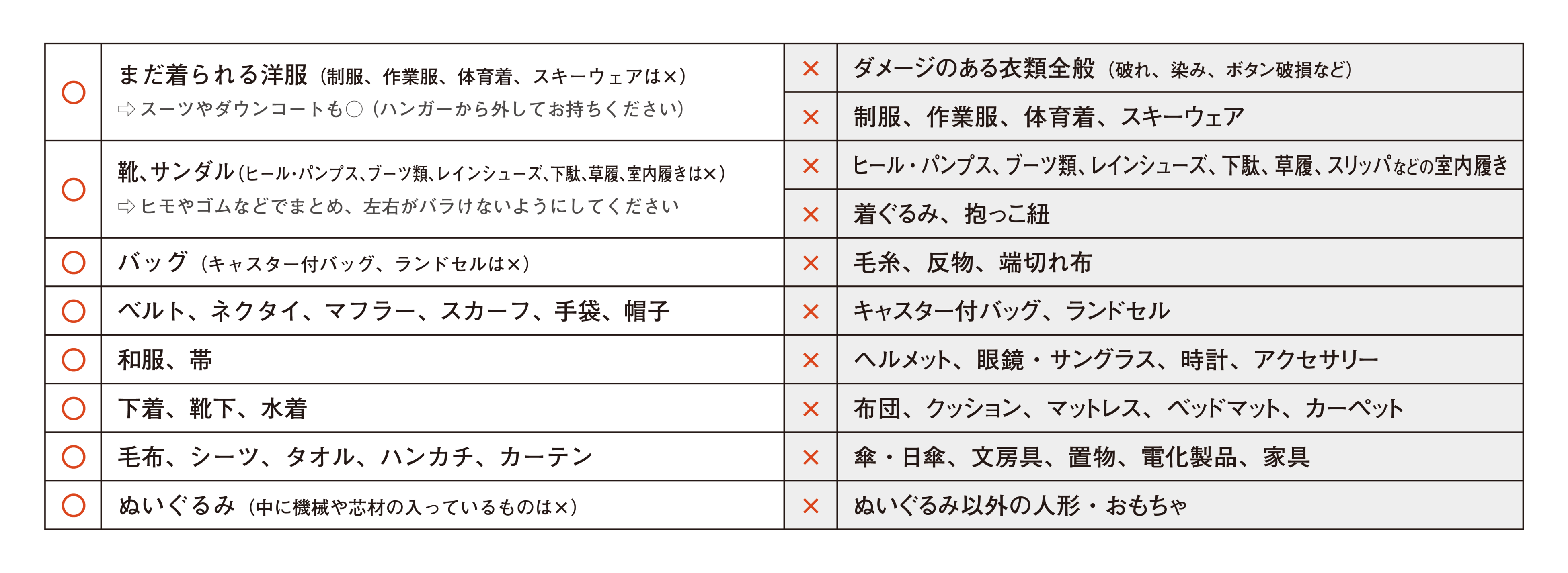 - 洋服ポストの受付品目