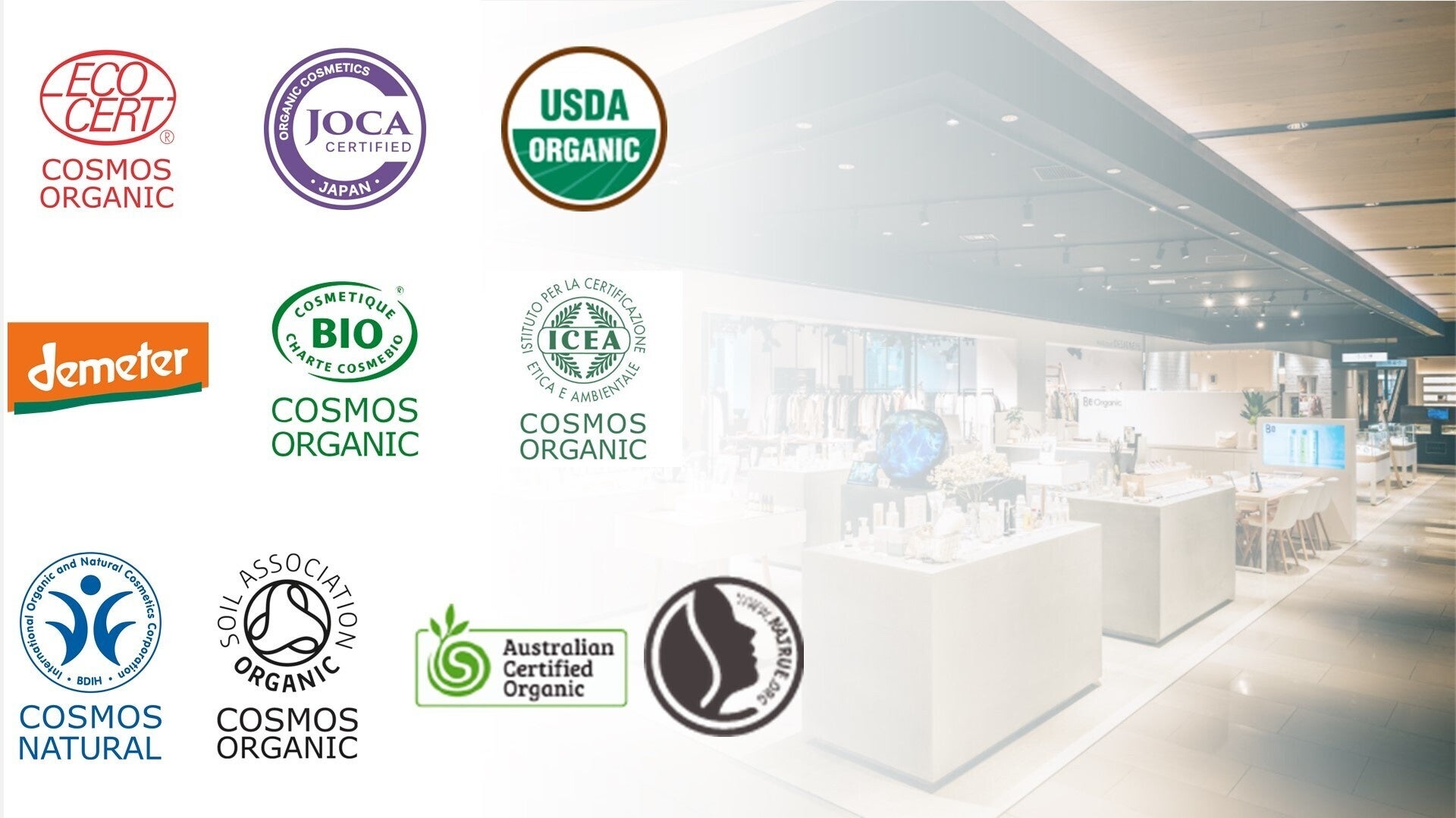 世界と日本の厳しいオーガニック認証を取得した商品を扱う、ビューティショップ。