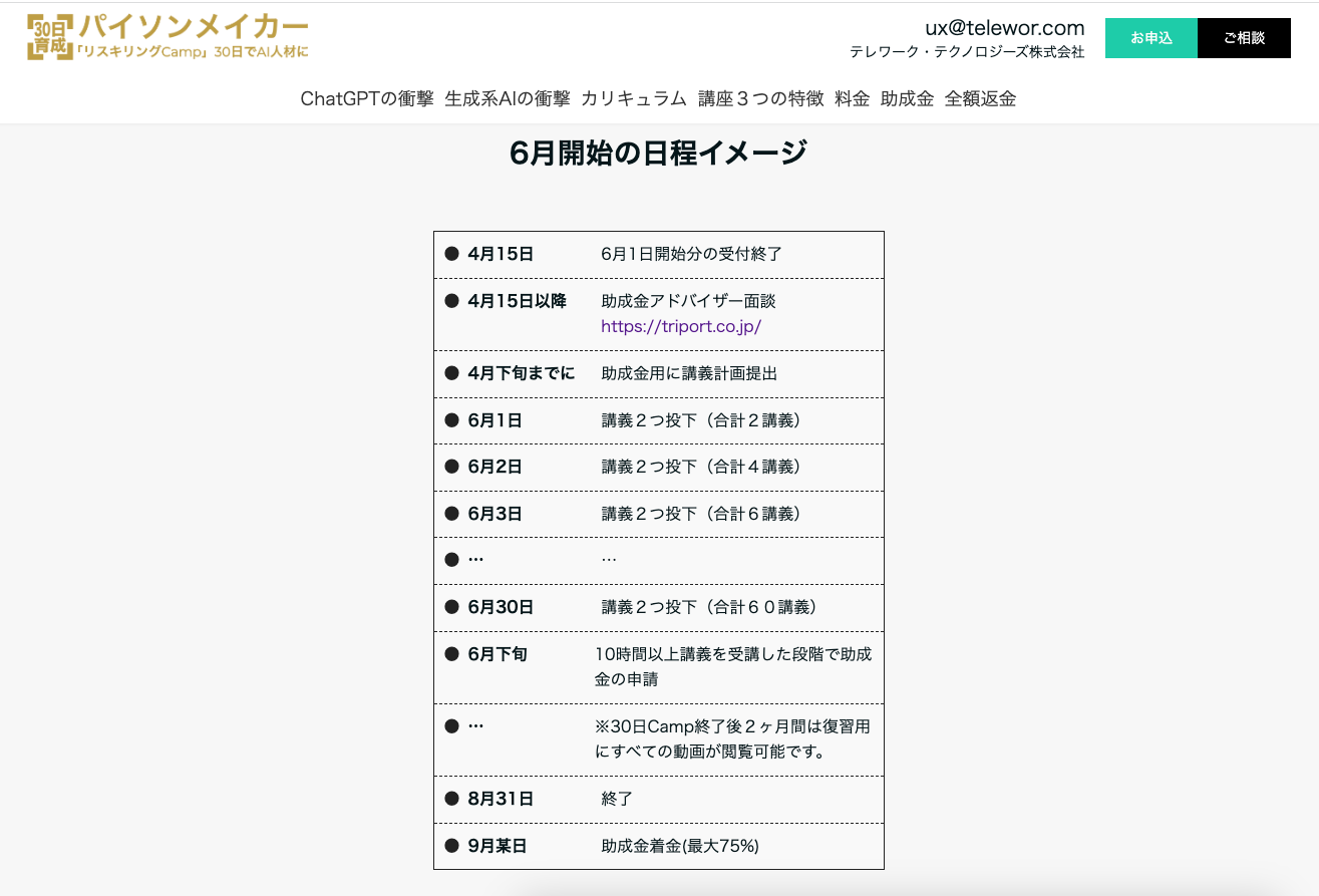 ※助成金で最大75%の助成を受けるために「受講開始1ヶ月前に受講計画の提出」が必要となるため、講座開始の1.5ヶ月前までの申し込み締め切りとしています。