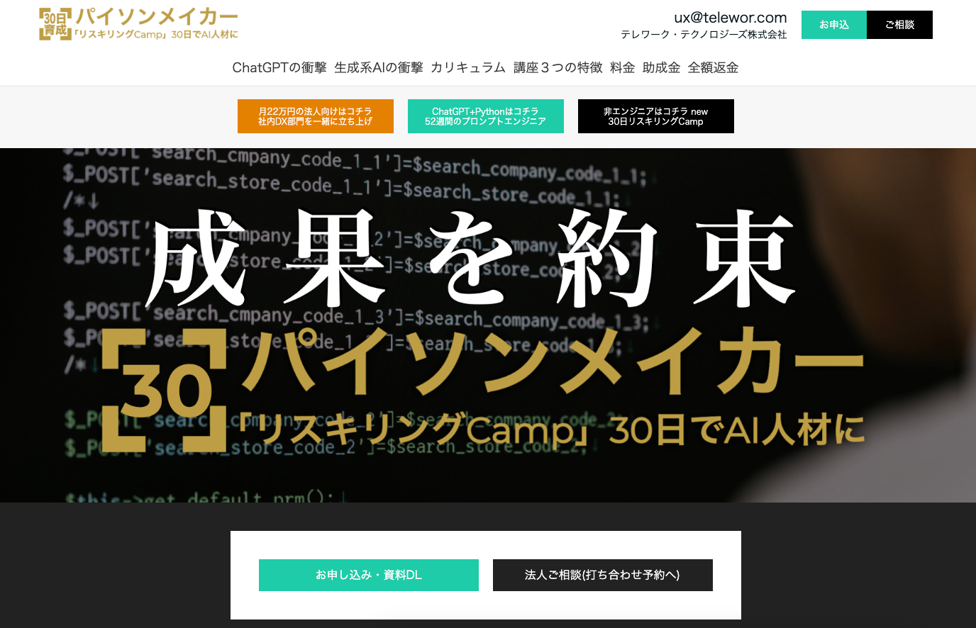 ChatGPT活用!30日で社員がAI人材になる「パイソンメイカーリスキリングCamp」受講受付開始、法人の非エンジニア向けにプログラミングなしの講座を6月1日開講