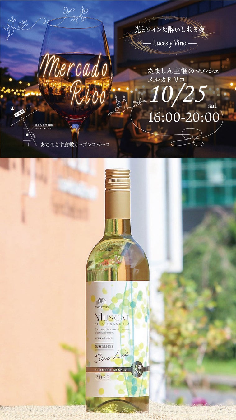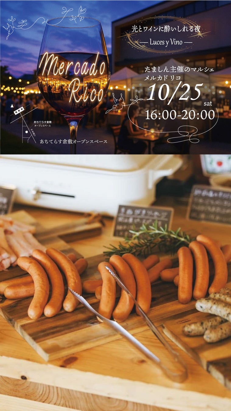 たましん主催のマルシェ「メルカドリコ」は、あちてらす倉敷オープン・スペースを舞台に、あなたを豊かな夜へと誘います。