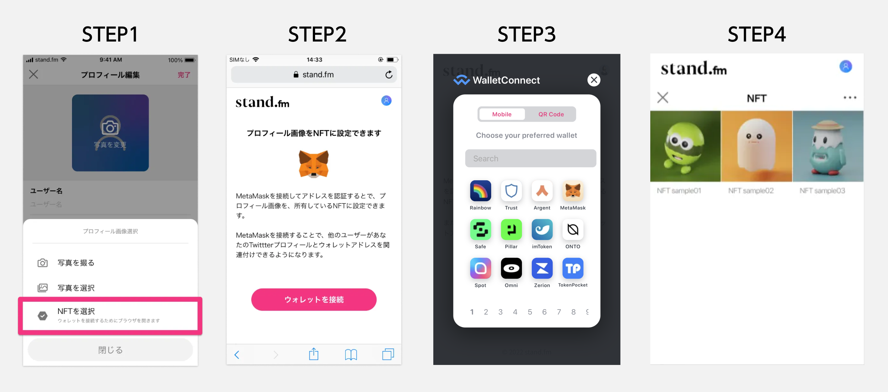 所持しているNFT画像を、stand.fmのプロフィール画像として設定することができます。- NFTとは