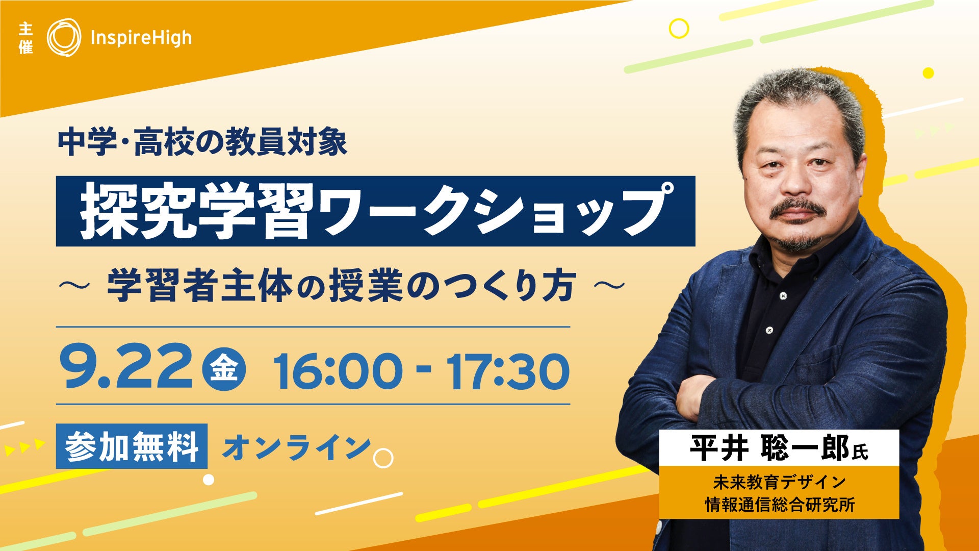今回、そんな「学習者主体の授業のつくり方」のヒントをお持ち帰りいただくため、平井聡一郎氏をお招きし、探究学習のワークショップを開催いたします。