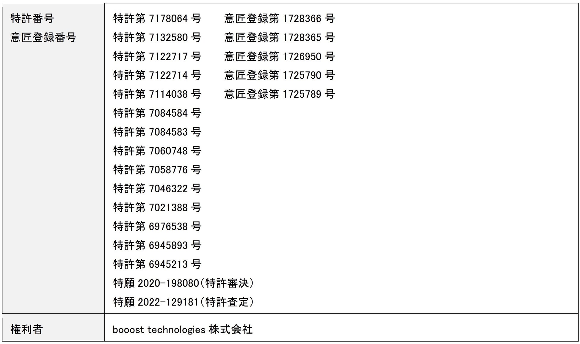 booost technologies株式会社は、他にも多数の特許出願および意匠登録出願をしております。顧客価値を基点に知財戦略を推進することで、同社にしか提供できない独自機能を拡大し、持続的な企業価値の向上を最大化していくことが予想されます。