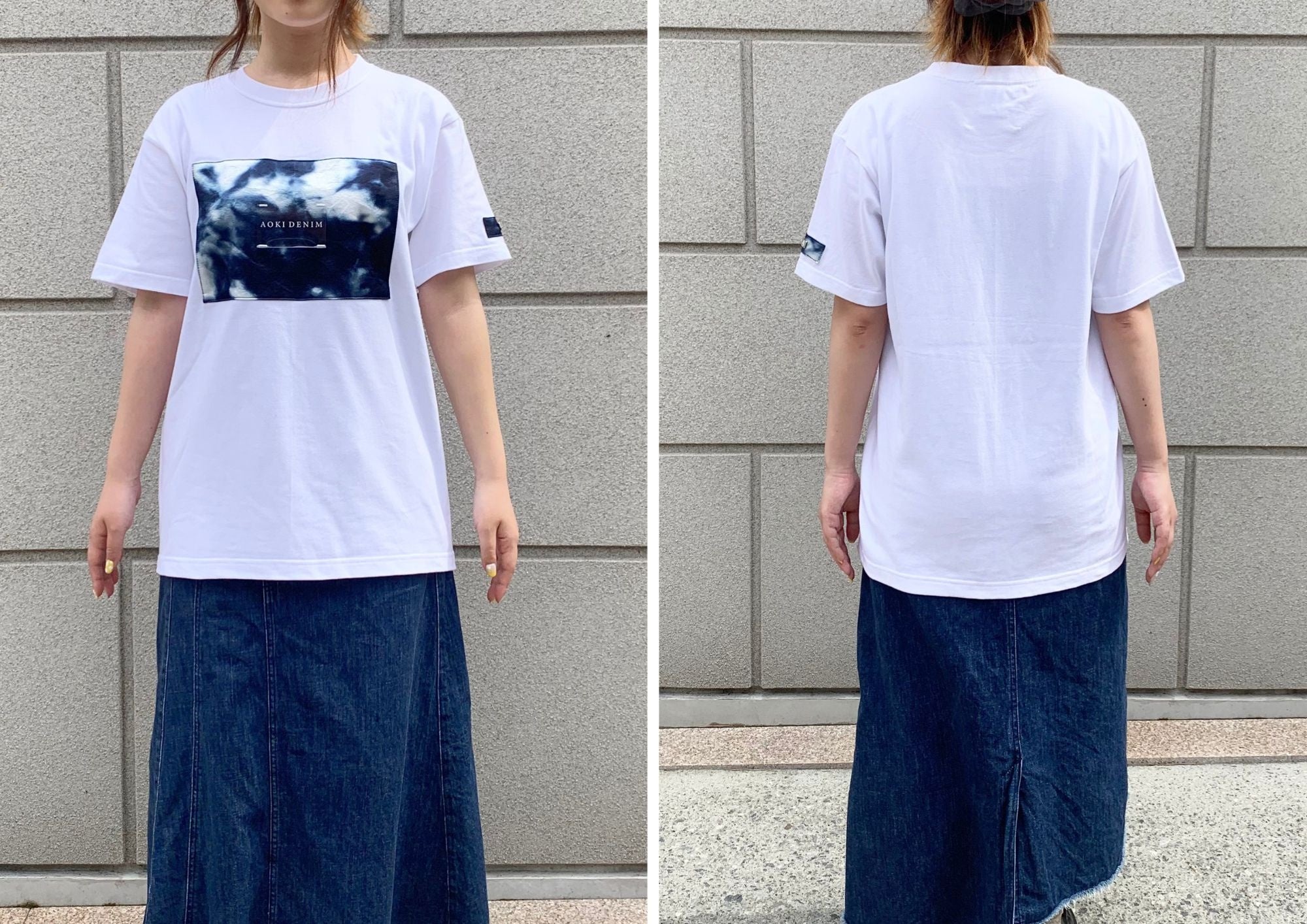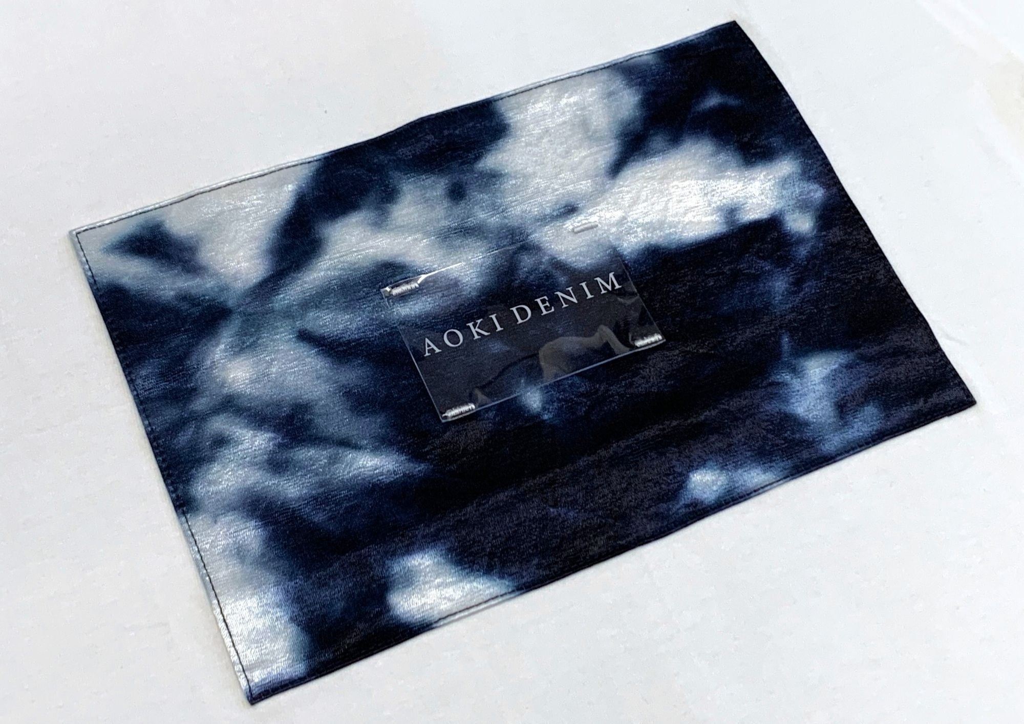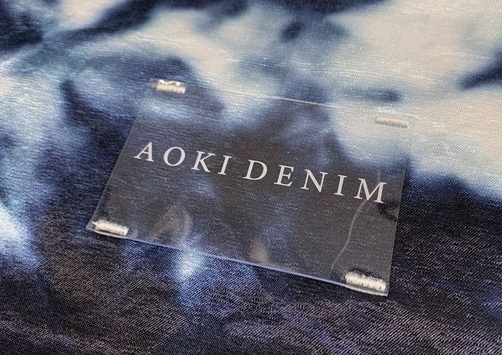 またフロントのデニムパッチの中央にはデニムブランドの印とも言える「クリスタルレザーパッチ」を施しています。透明感のあるクリスタルレザーパッチは青空をイメージしたデニムパッチの上に「AOKI DENIM」の文字を浮かび上がらせる仕様で表現されています。