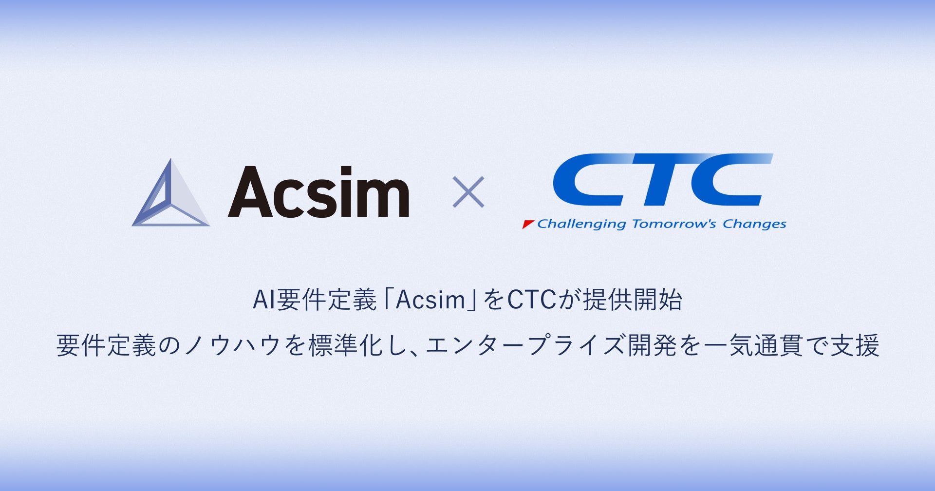 Acsimは、要件定義における情報整理や設計プロセスを構造化し、自社ナレッジを活用し、AIを前提とした要件定義を実施することができます。今回、エンタープライズ領域で豊富な実績を持つCTC様とパートナー契約を締結できることを大変心強く感じております。