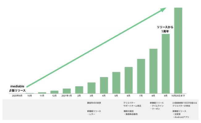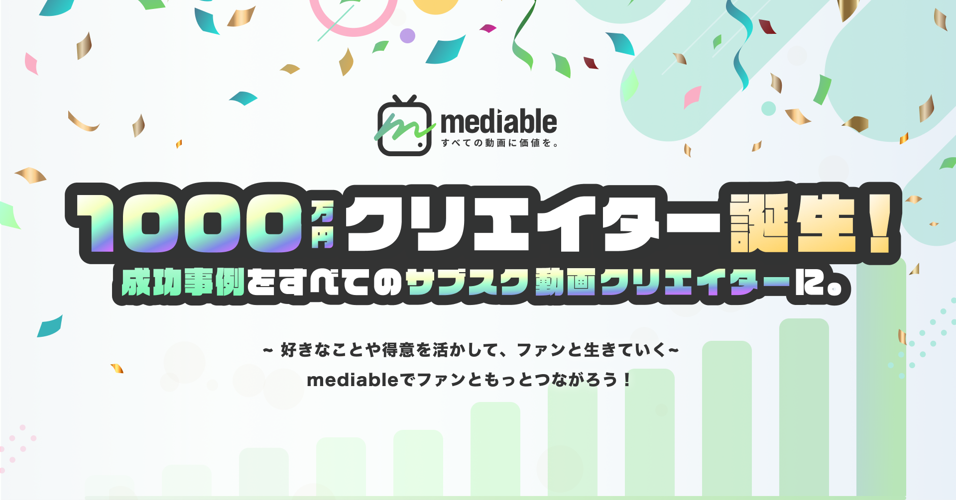だれもがクリエイターとして音楽や動画といったコンテンツを発信し、ファンから応援してもらえる「クリエイターエコノミー」の時代に、mediableでサブスク課金してくれるファンの数が徐々に増えて月額課金や投げ銭を含め累計収益が1,000万円を超えた、という成功事例が生まれました。