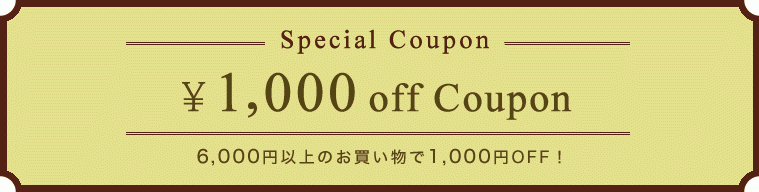 期間中、税込み6,000円以上お買い上げのお客様に限り、1,000円OFFクーポンをプレゼントします。