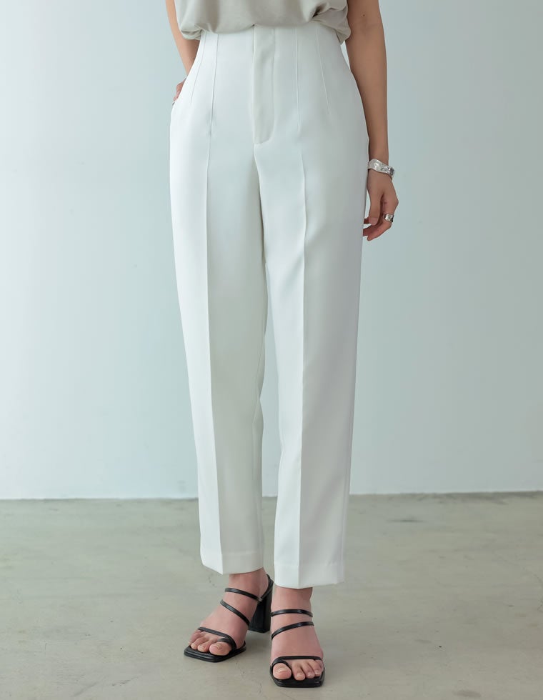 [低身長/高身長サイズ有]ツイルハイウエストダーツテーパードパンツ