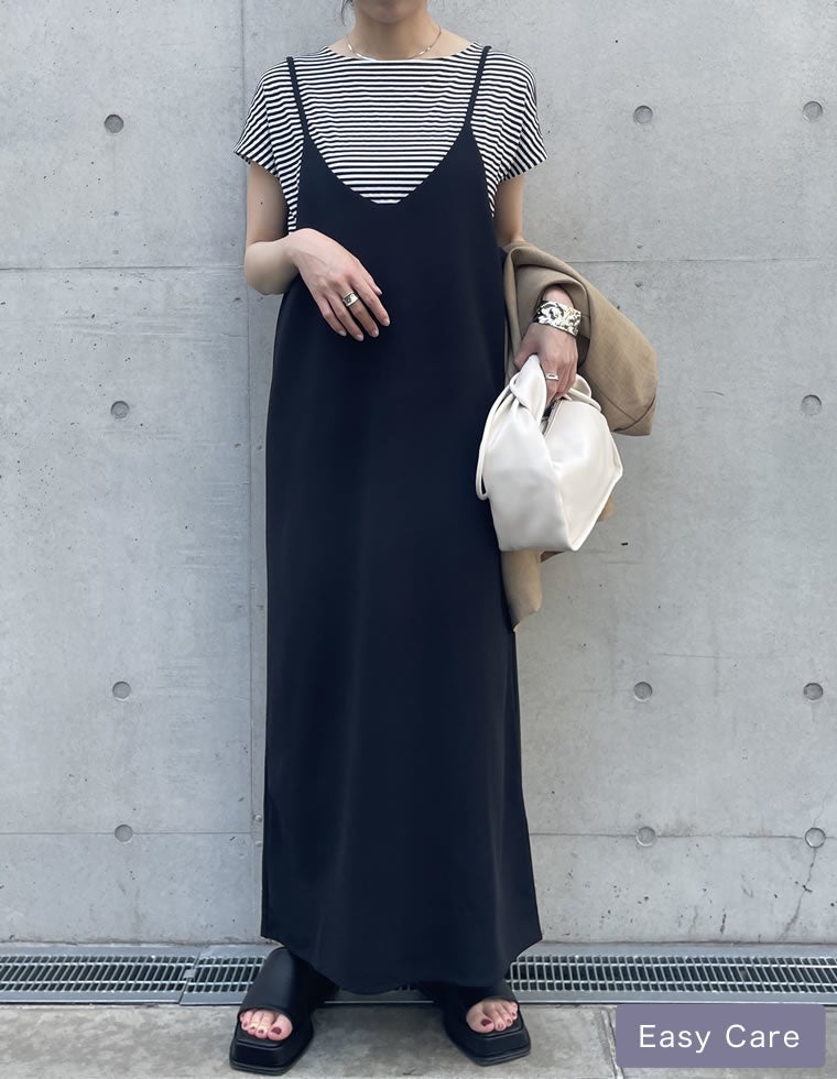 [高身長サイズ有][イージーケア]ジョーゼットポンチロングキャミワンピース
